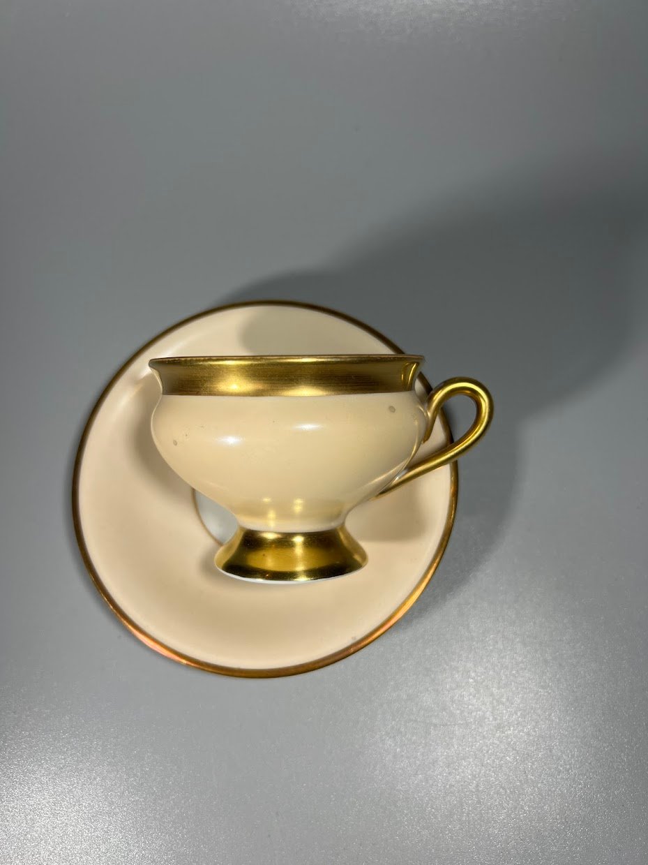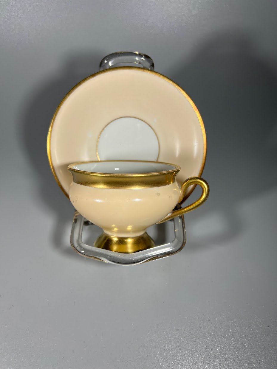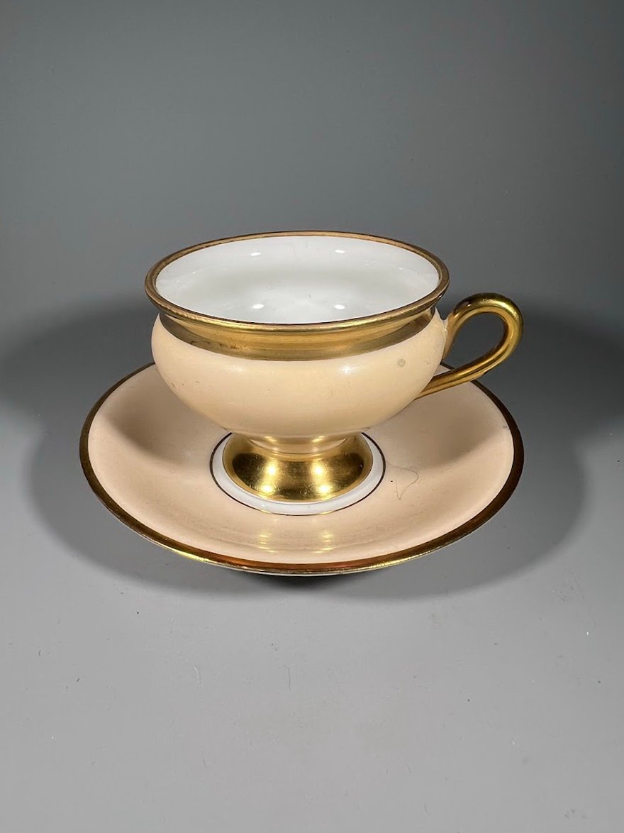 Puodelis su lėkštute porcelianiniai, antikvariniai, Kjøbenhavns Porcellains Maleri (KPM), Kopenhagos porceliano tapyba, Danija. 2 vnt. Kaina po 26