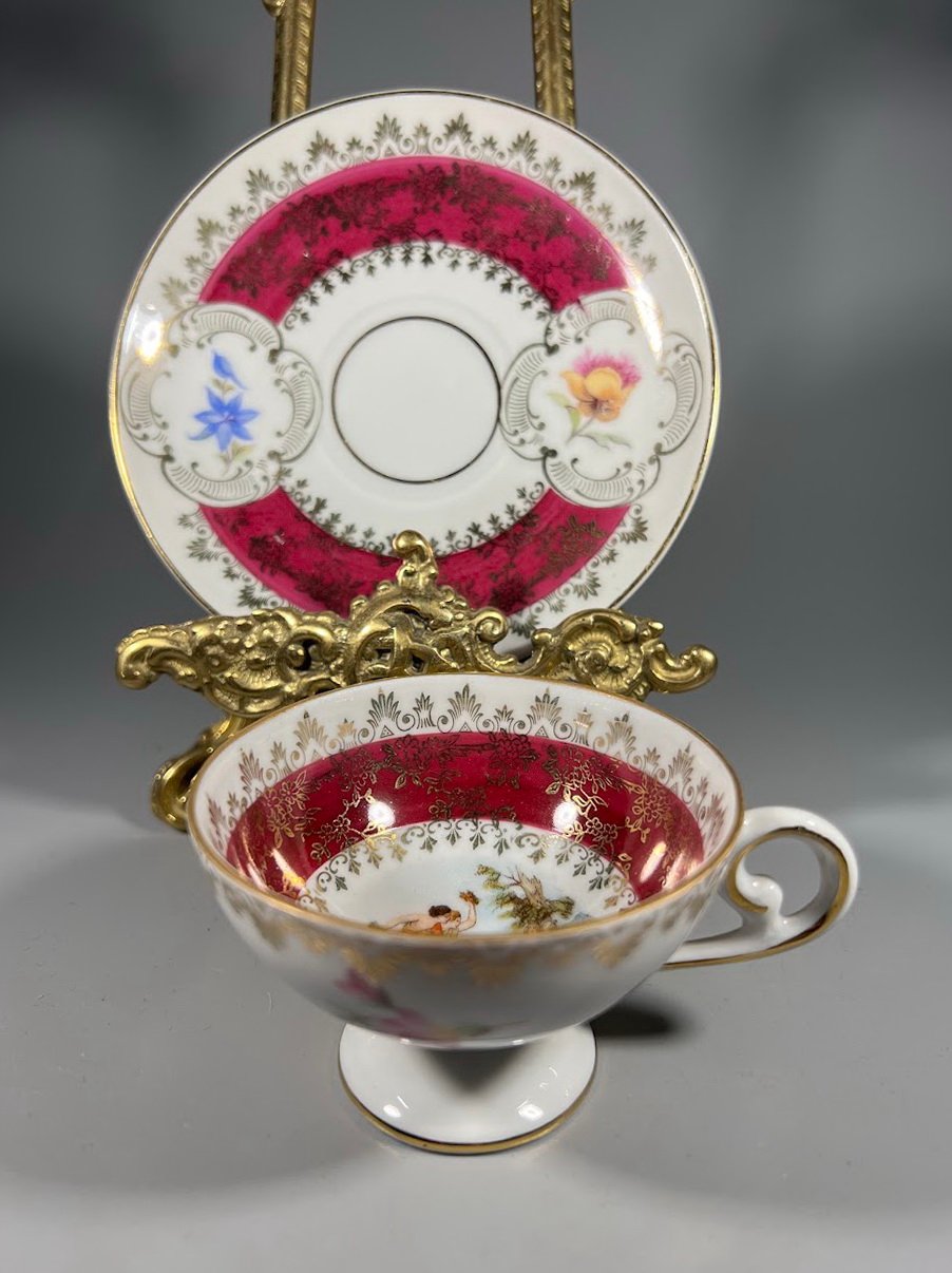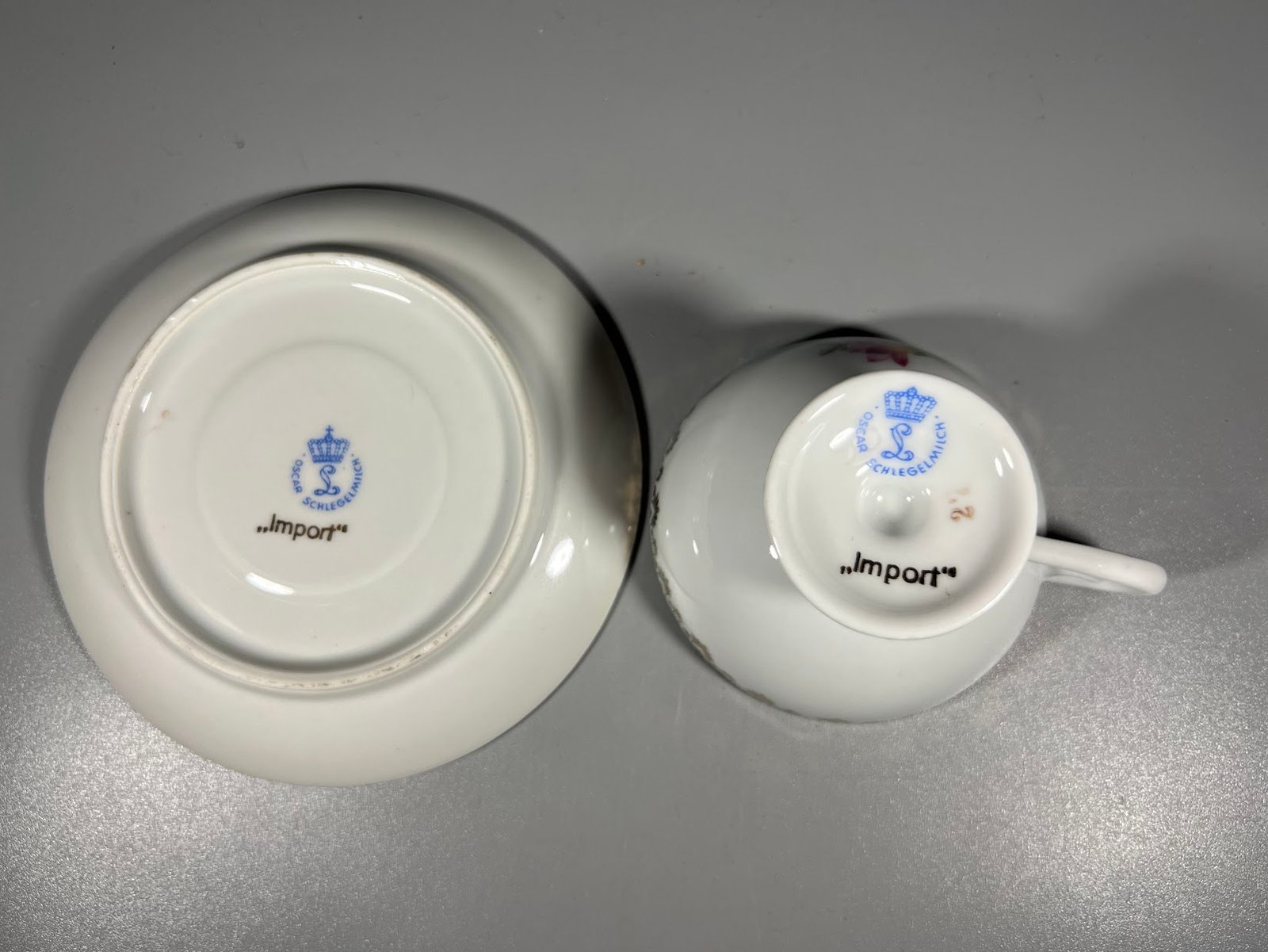 Puodelis su lėkštute porcelianinis, antikvarinis. Oscar Schlegelmilch. Vokietija. 60 ml, espresso. Kaina 18