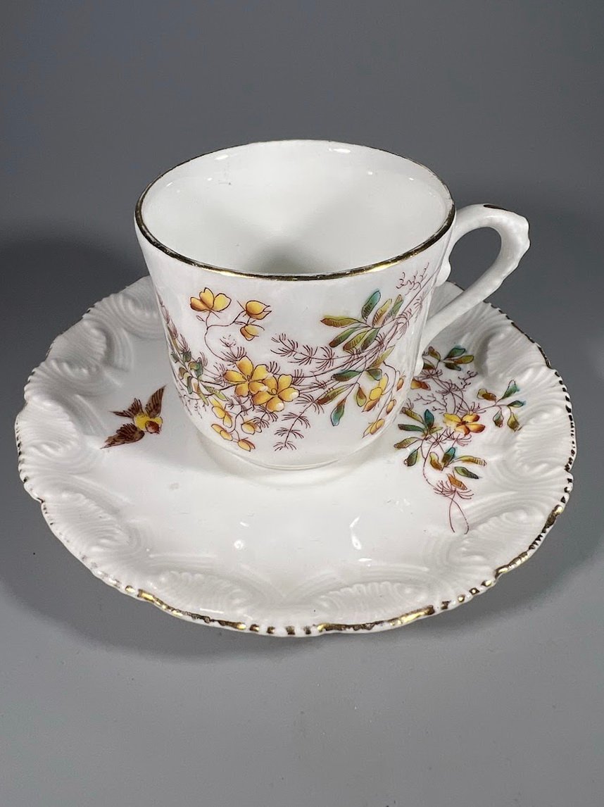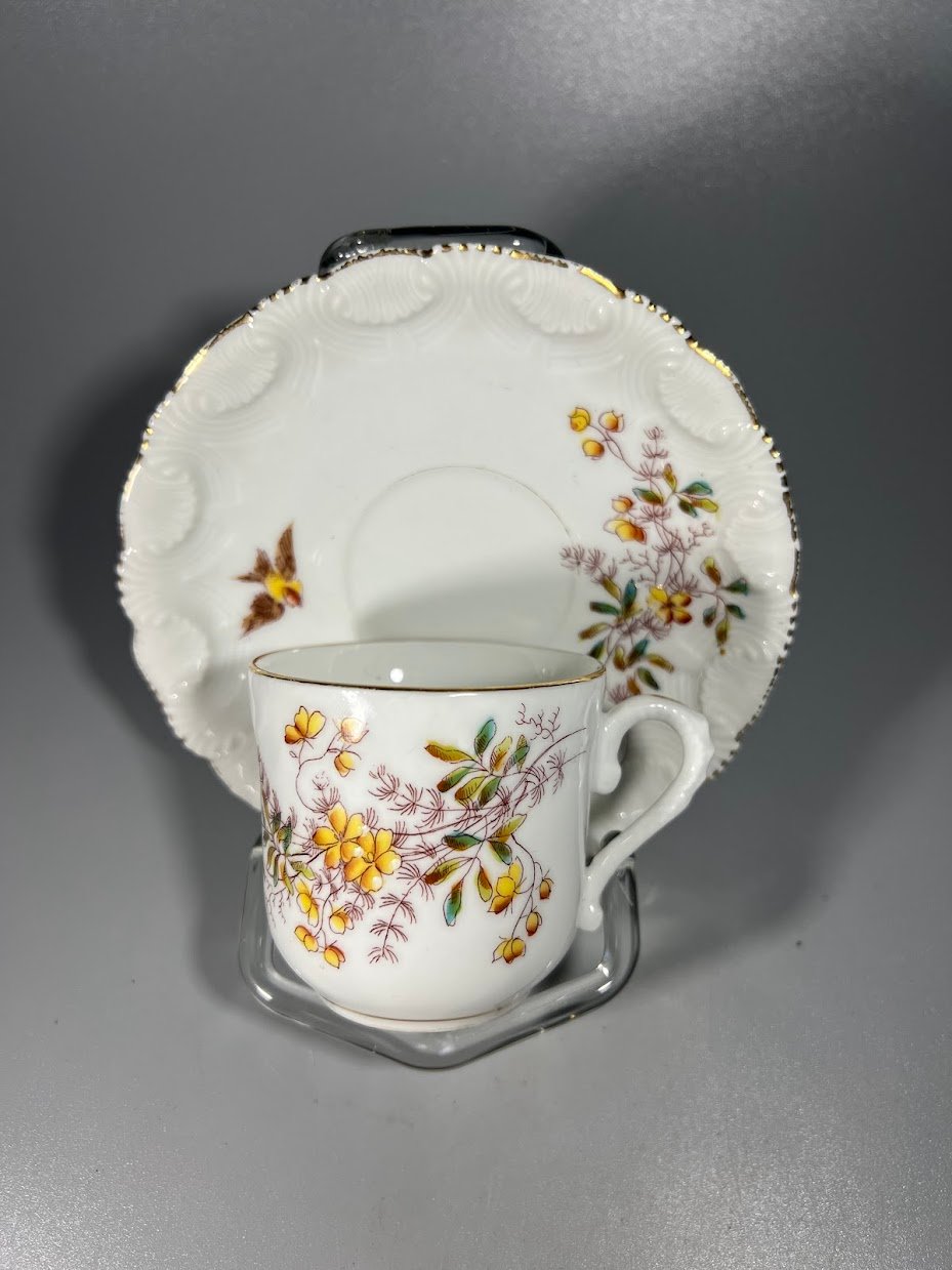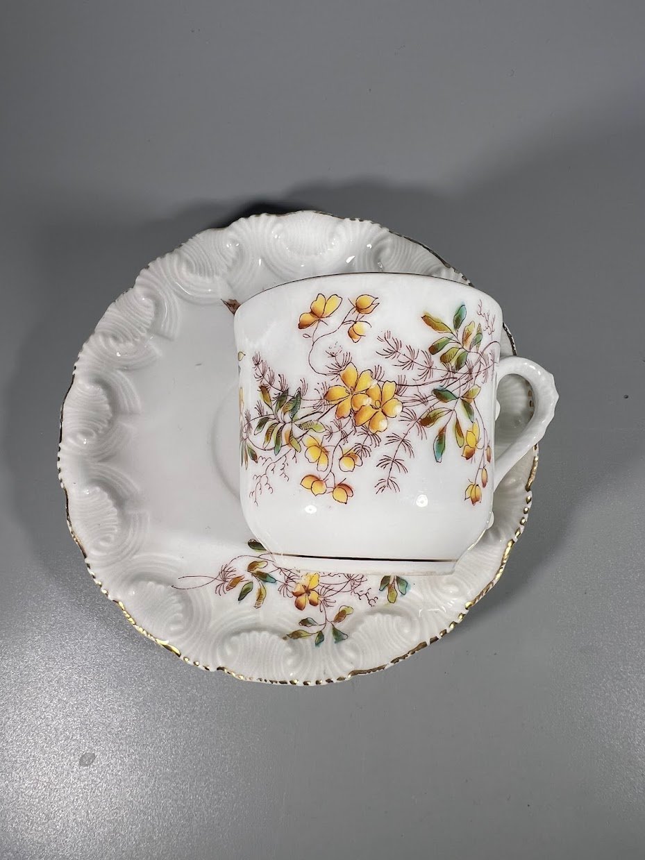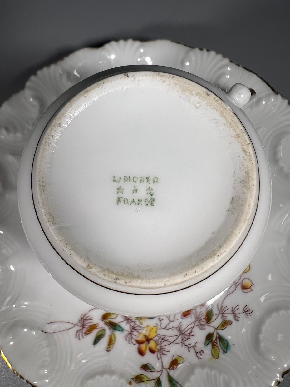 Puodelis su lėkštute porcelianinis, antikvarinis, prancūziškas. Limoges France. Tapytas. Puodelio talpa 120 ml. Kaina 16