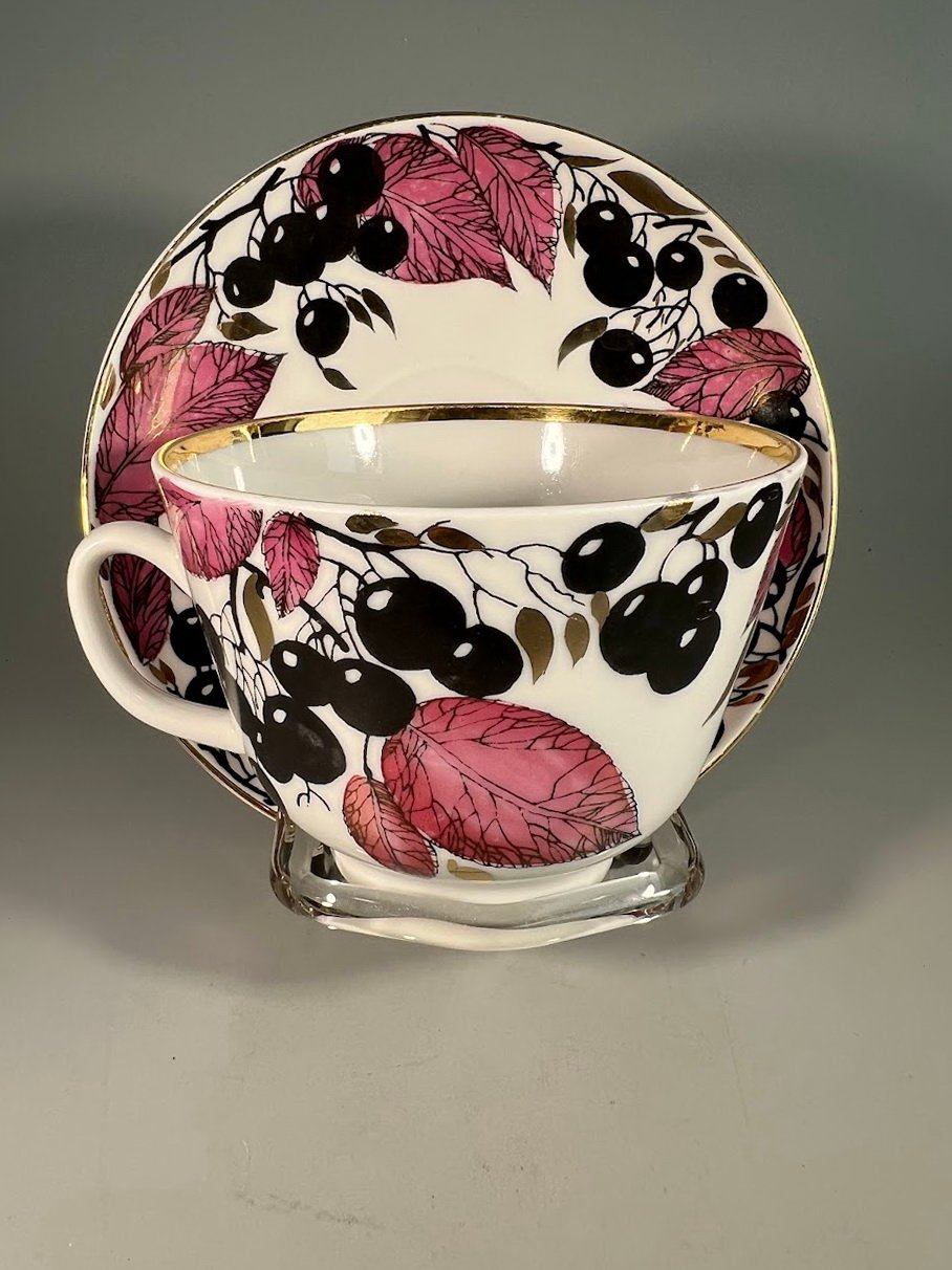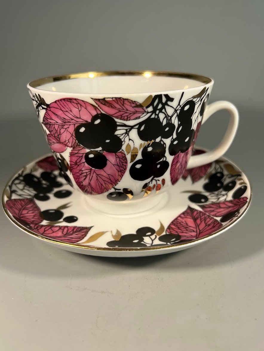 Puodelis su lėkštute porcelianinis LFZ. ЛФЗ. Tapyba, auksavimas, porcelianas. Talpa 380 ml. 3 vnt. Kaina po 38