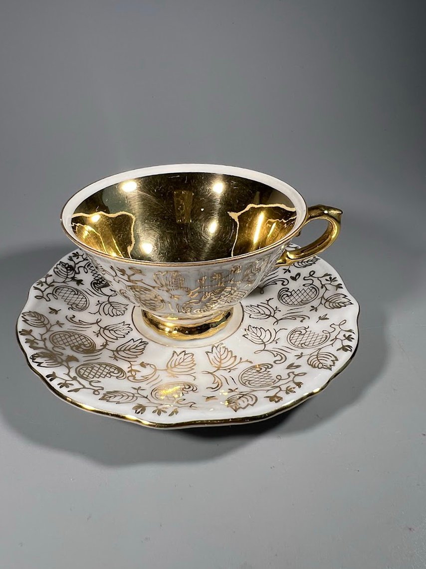 Puodelis su lėkštute porcelianinis, vokiškas, Mitterteich Bavaria. 1956–1960 m. 80 ml. Kaina 13