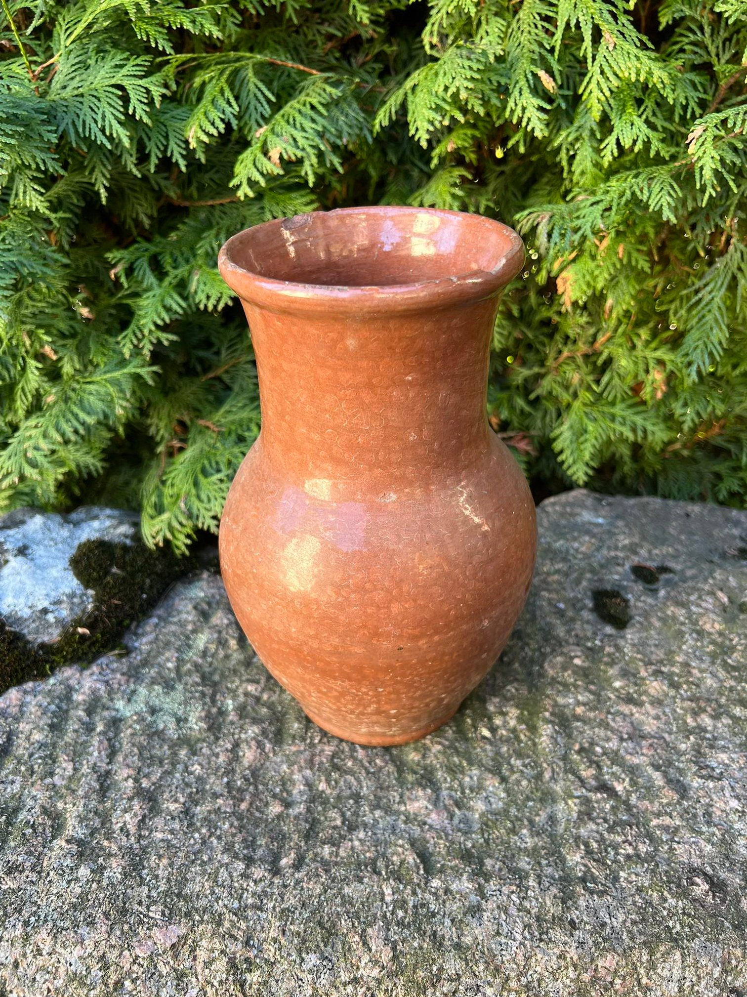 Puodynė molinė kaimiška, liaudiška, glazūruota, antikvarinė. Neskilus, netrūkus. Aukštis 24, skersmuo 15 cm. Kaina 57