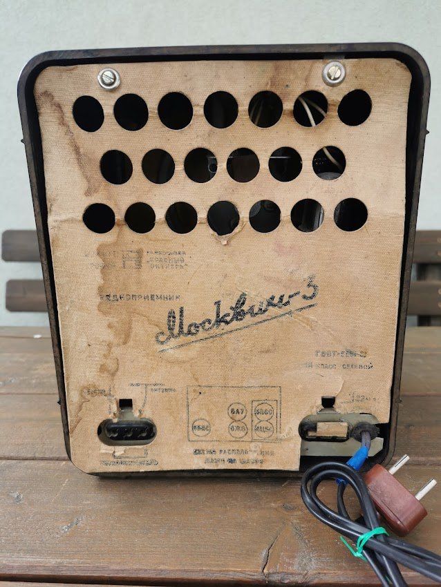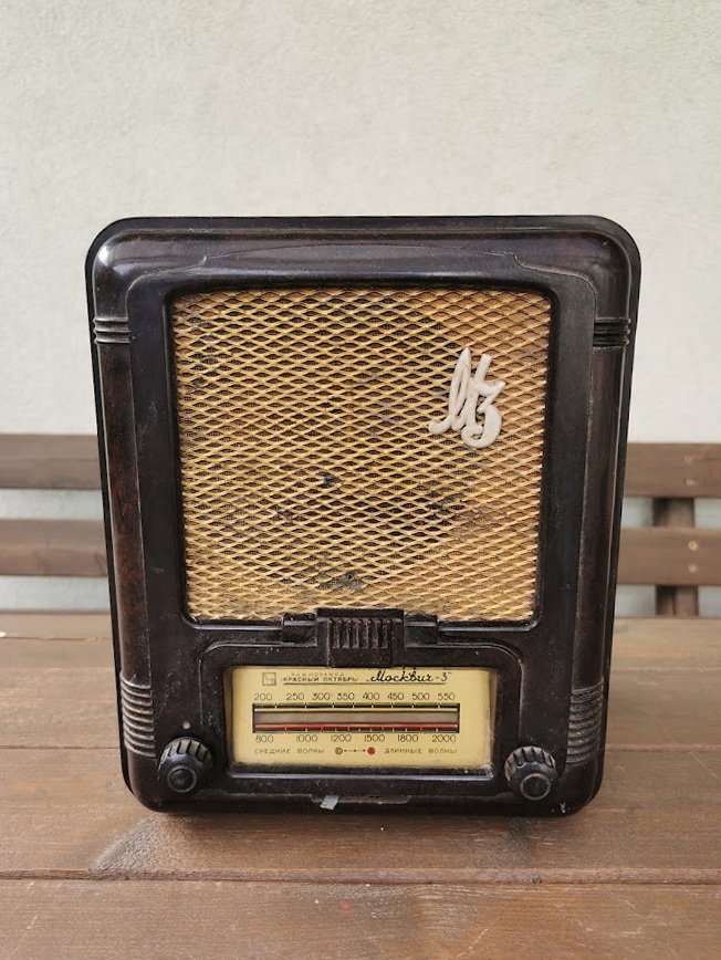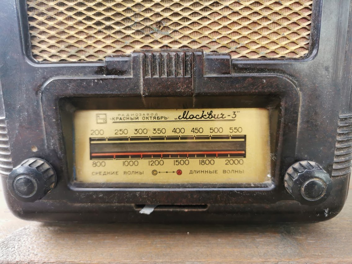 Radija Moskvich-3, Москвичь 3, tarybinė, 1954 m. Gamintojas: Maskvos valstybinė gamykla "Raudonasis Spalis". Netikrinta. Kaina 107