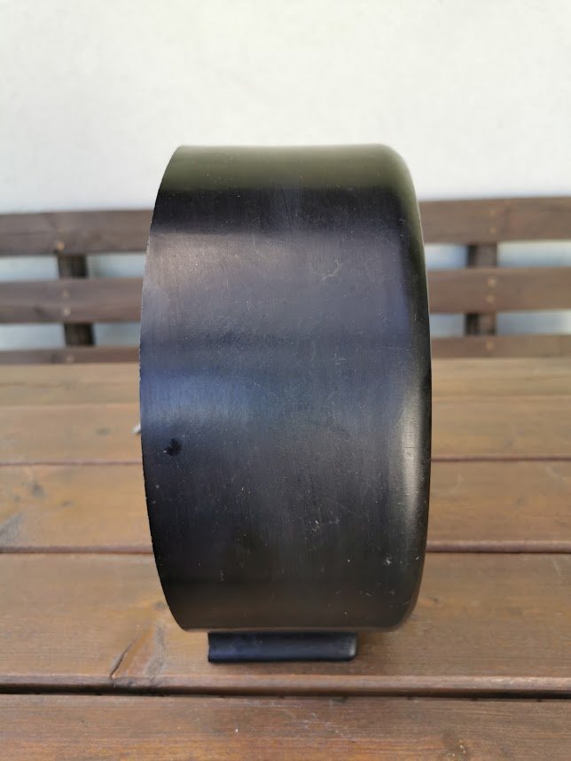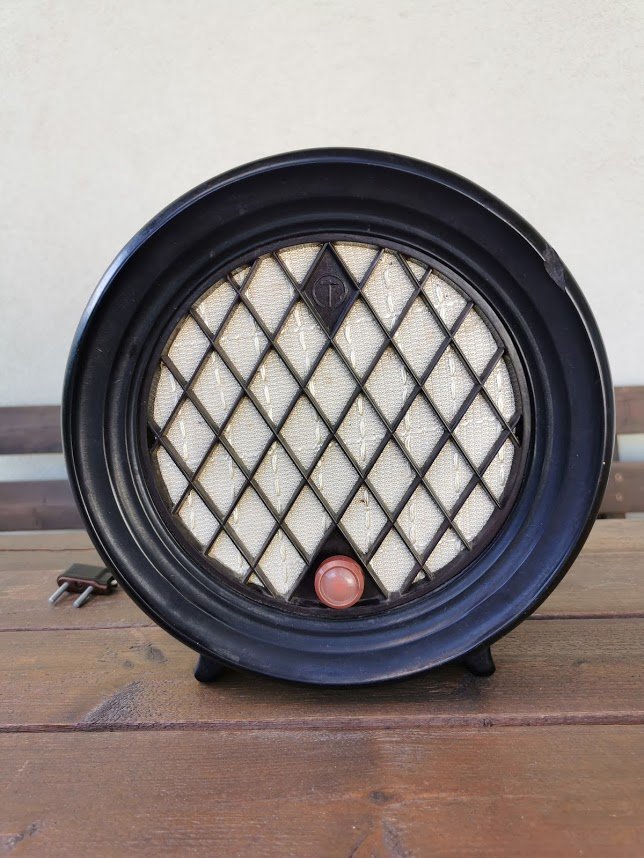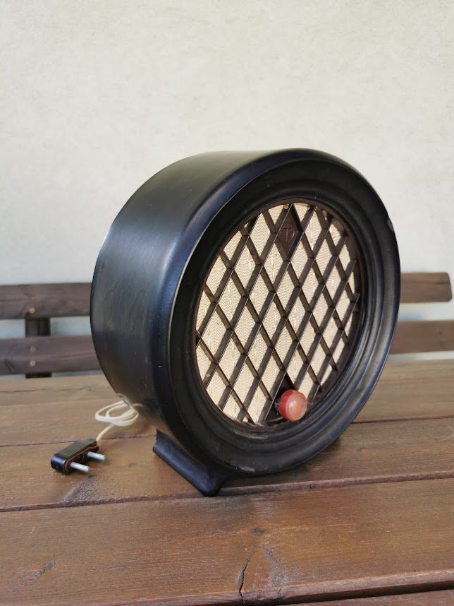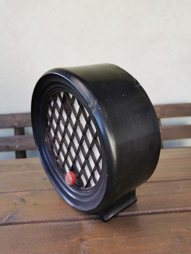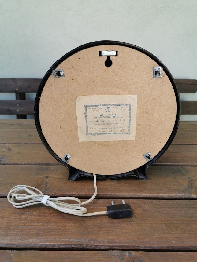 Radio taškas-abonentinis garsiakalbis, pagamintas 1964 m. Daugpilio kalėjime (Даугавпилская тюрьма ОЦ 78/3). The subscriber loudspeaker made in Daugavpils Prison. Korpusas karbolito. Aukštis 26, plotis 10 cm. Svoris 2 kg. Kaina 92
