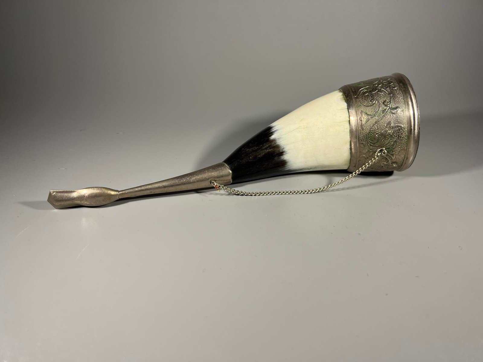 Ragas originalus, metalas puoštas reljefiniais piešiniais, tinkamas naudojimui. Ilgis 23 cm. Kaina 36