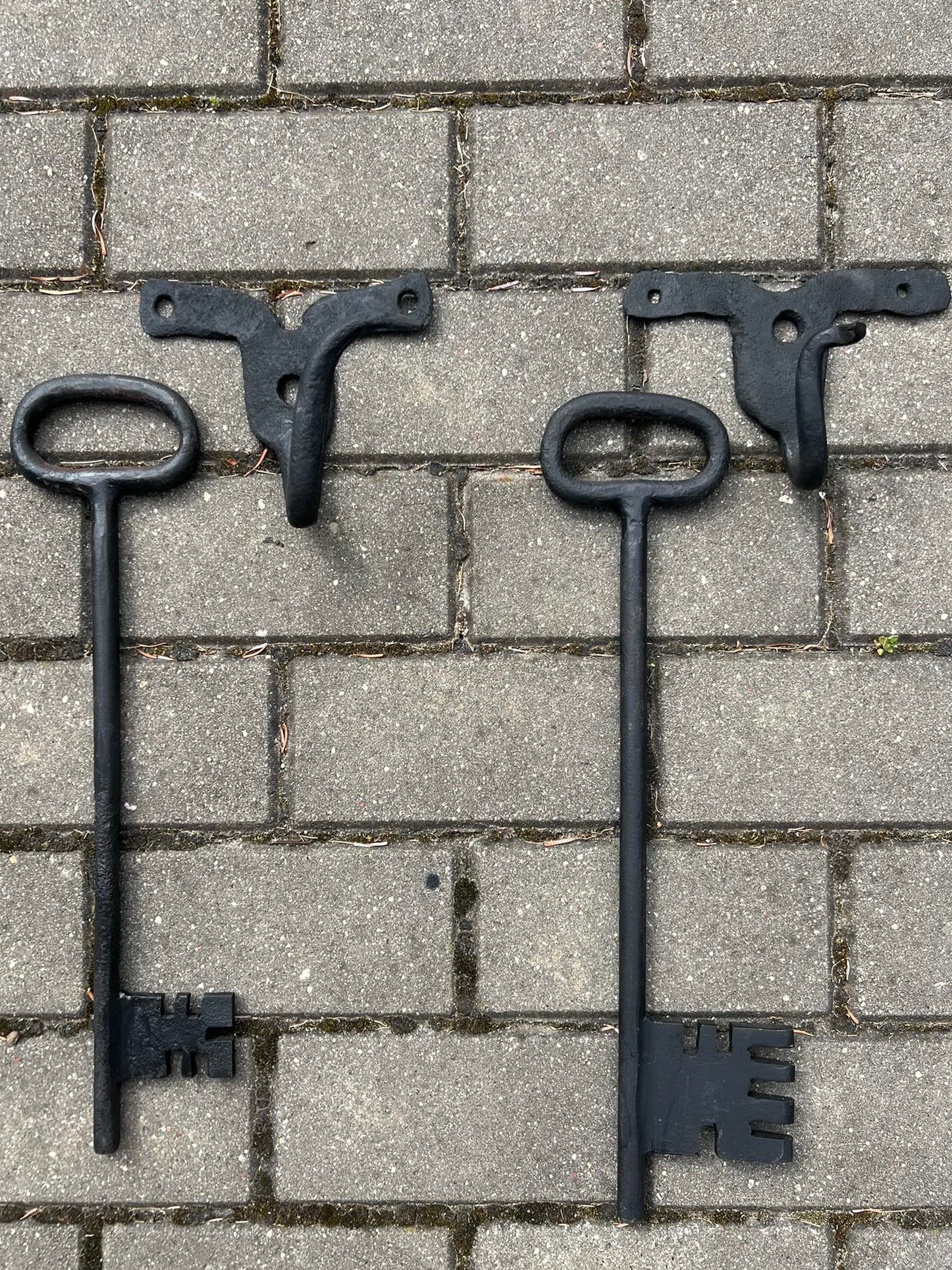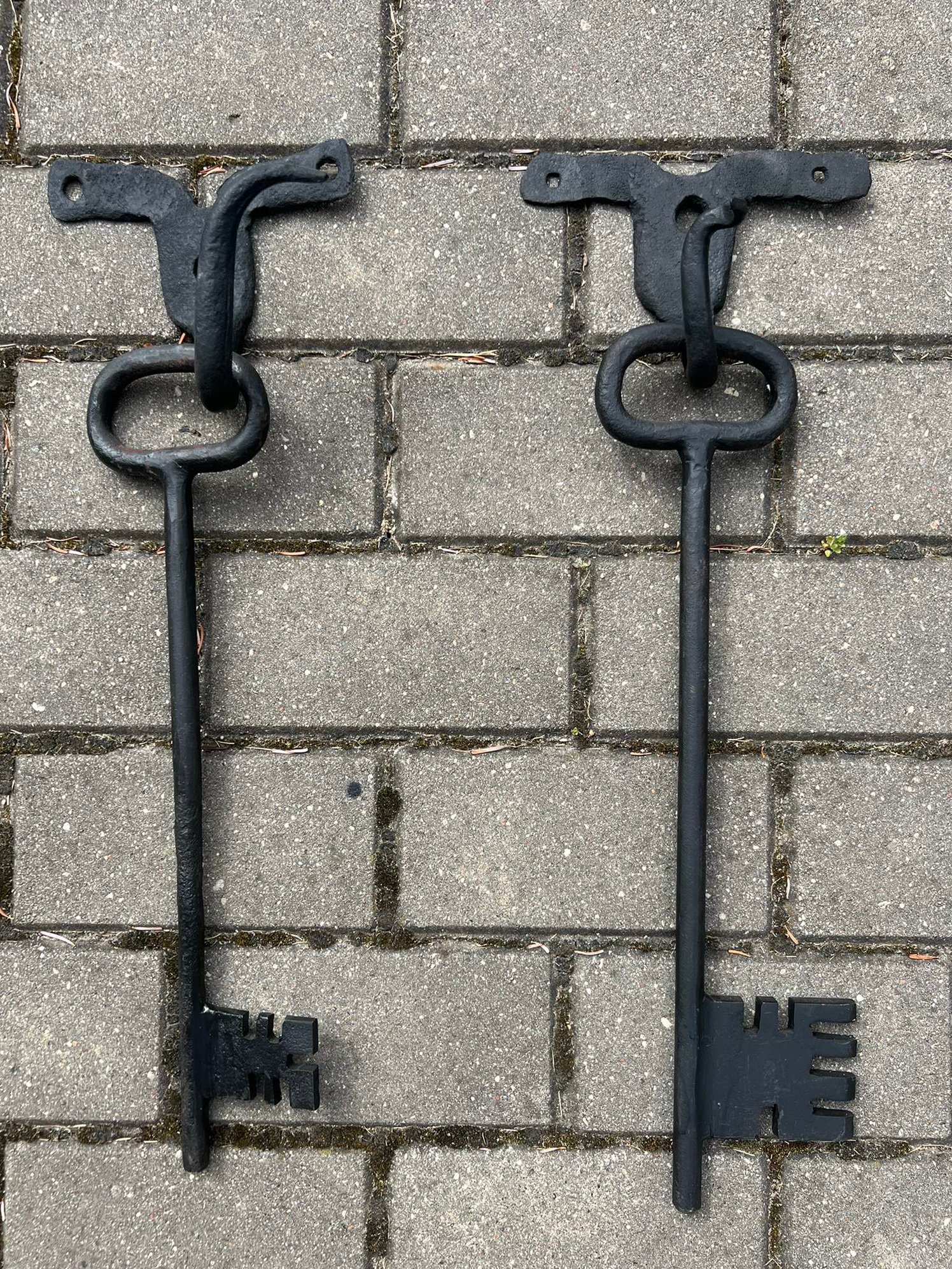 Didžiuliai raktai su pakabinimais. 2 vnt. Ilgis su pakabinimu 56 cm. Rakto ilgis 36 cm. Kaina po 58