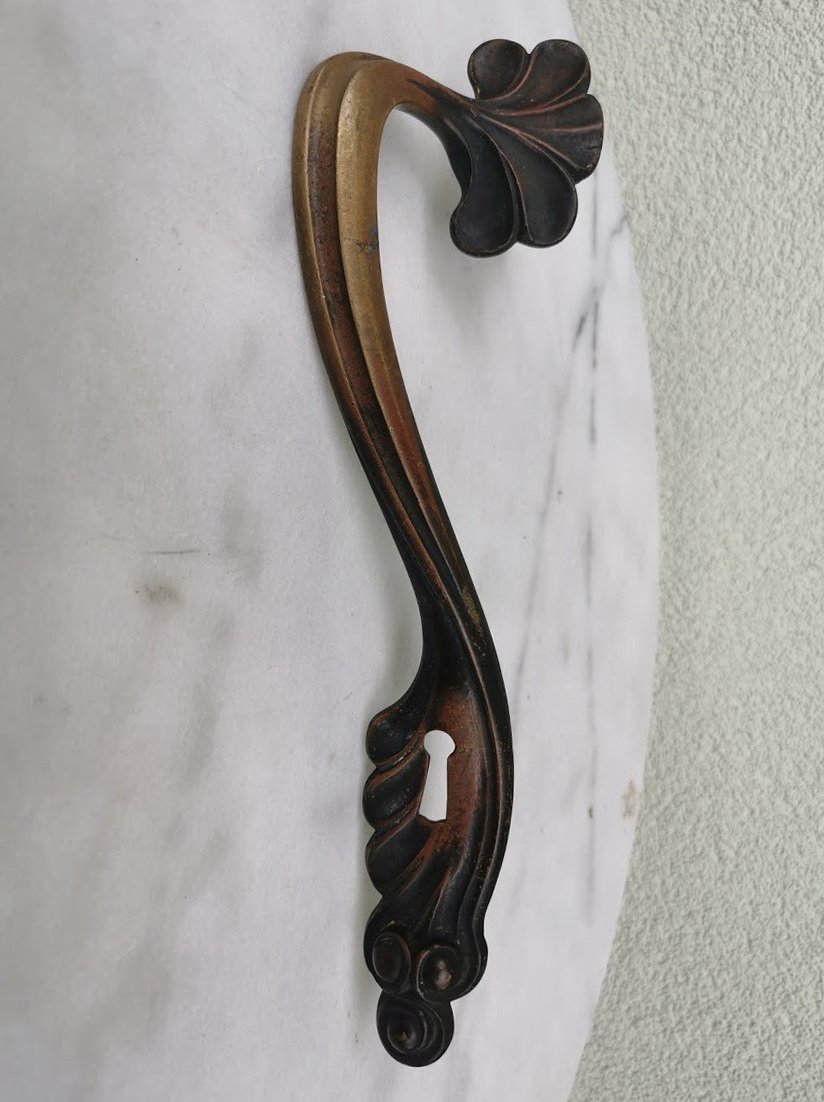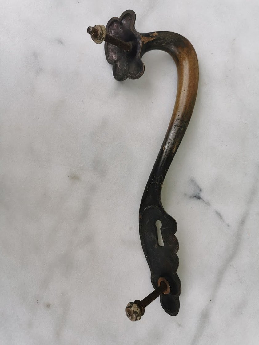 Rankena durų antikvarinė, secesijos stiliaus, žalvarinė. Kaina 58