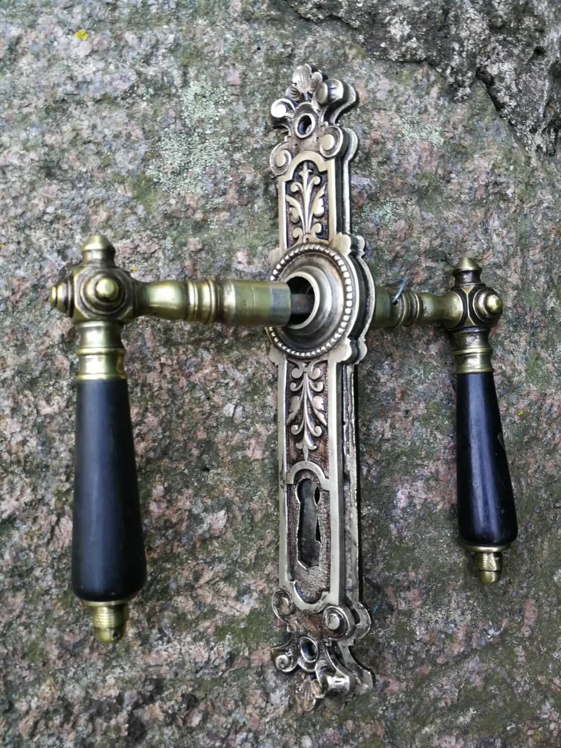 Rankenos, rankena durų antikvarinė puošta medžiu. Kaina 128