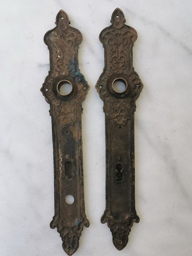 Rankenų apdailos bronzinės, antikvarinės. 2 vnt. Kaina 42 už abi.