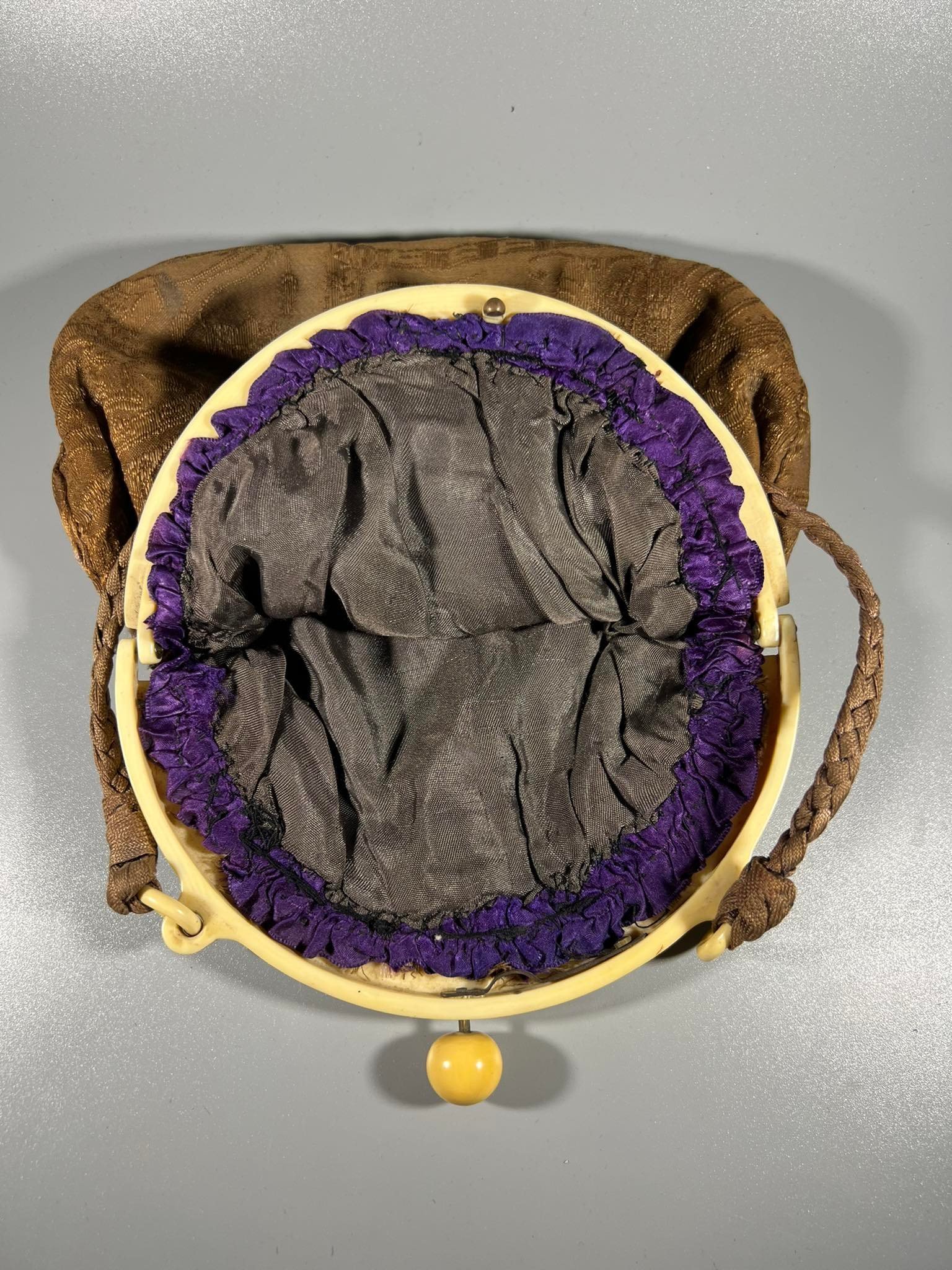 Rankinukas antikkvarinis. Prancūzija. Aukštis be rankenos 21, plotis 19 cm. Kaina 63
