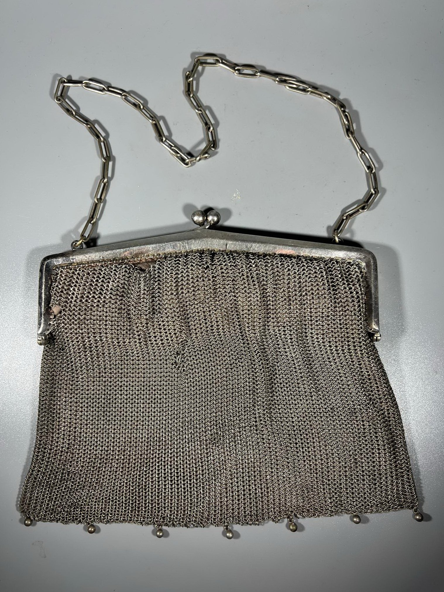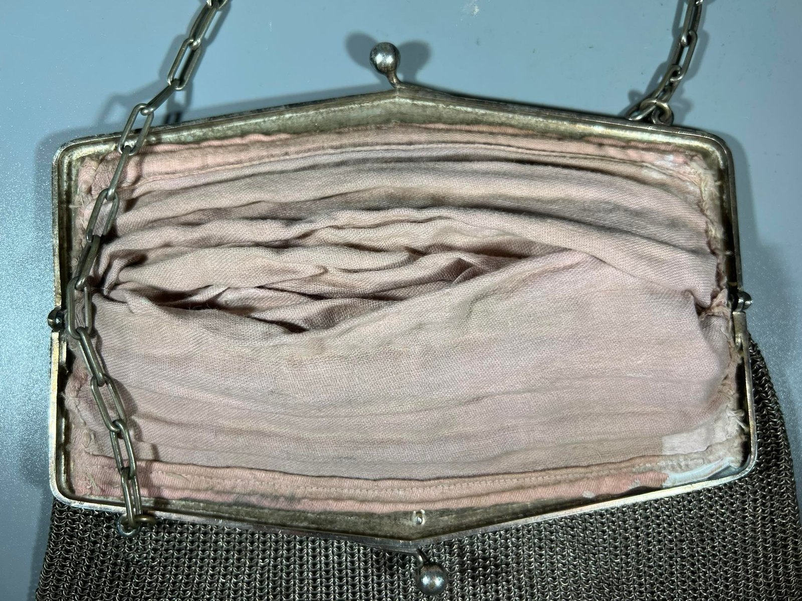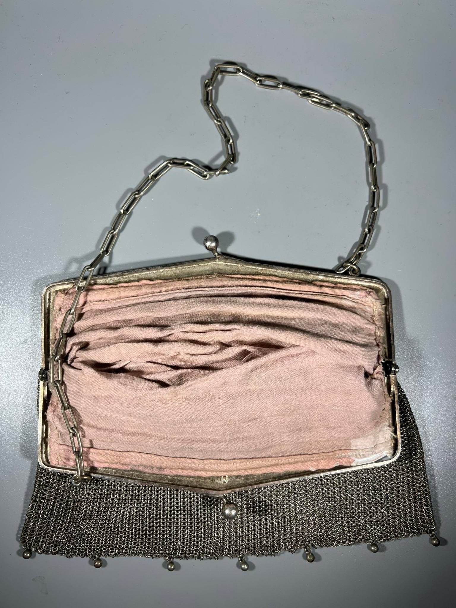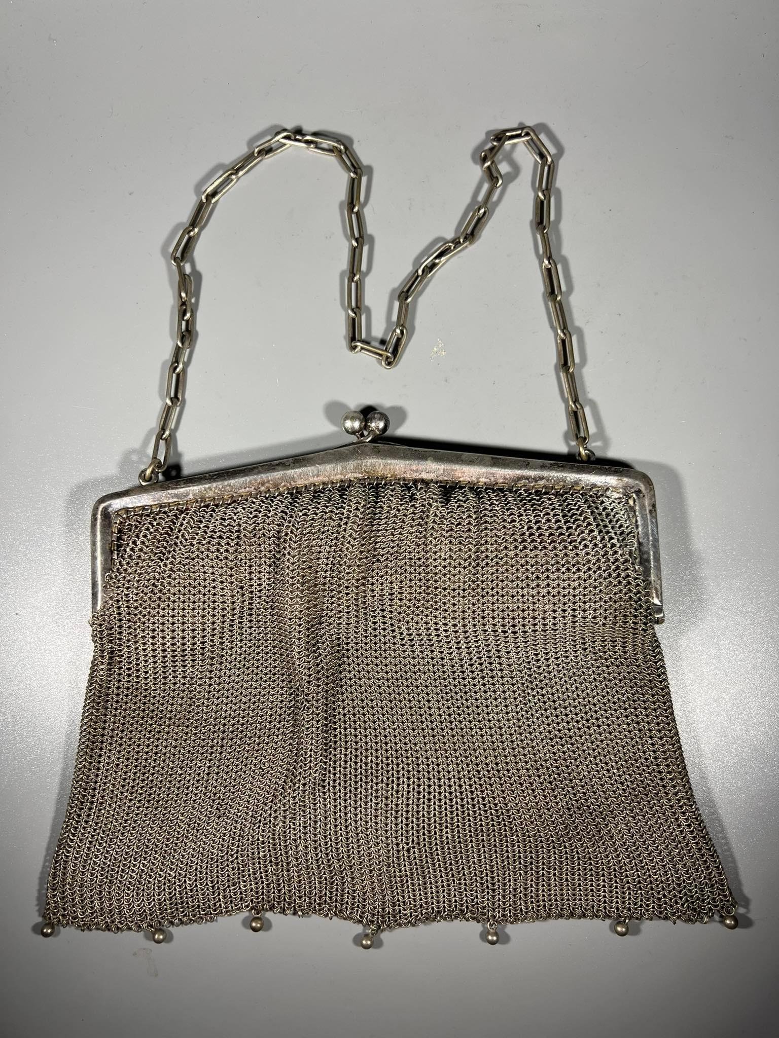 Rankinukas antikvarinis, Secesijos stiliaus ir laikotarpio, sidabruotas. Dydis be rankenos 17 x 20 cm. Išlikęs originalus medžiaginis vidus. Kaina 138