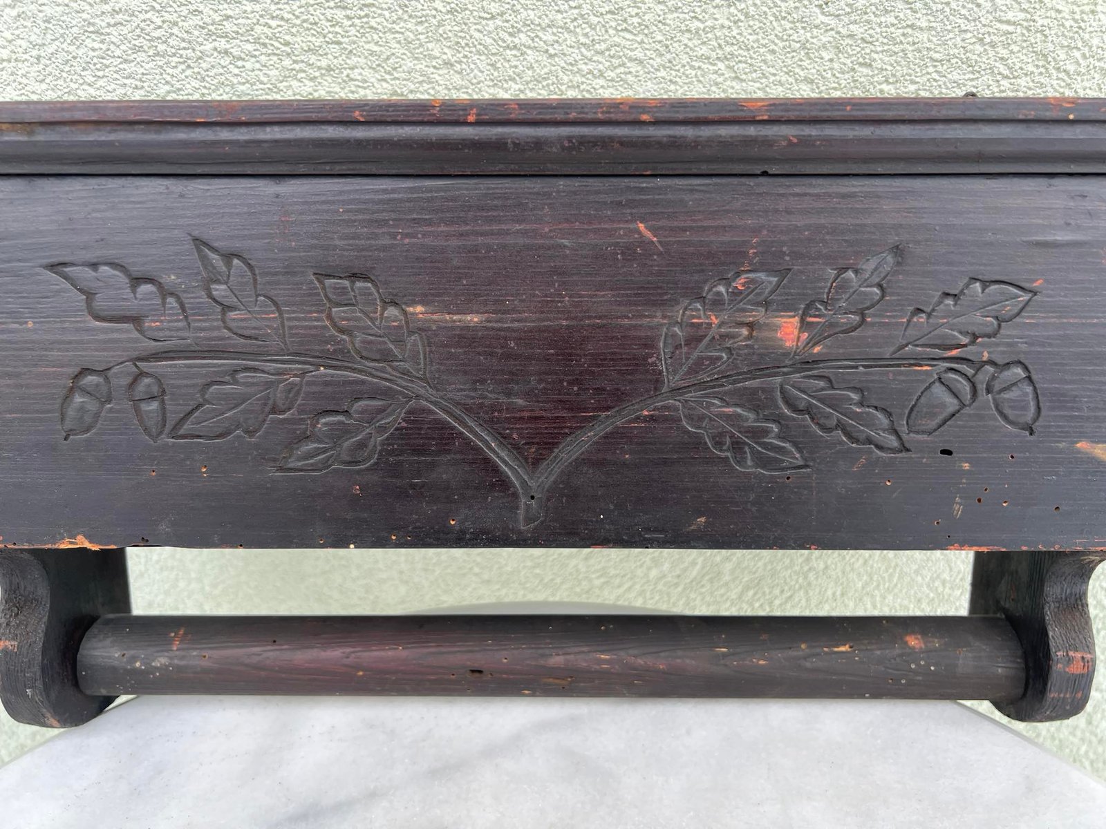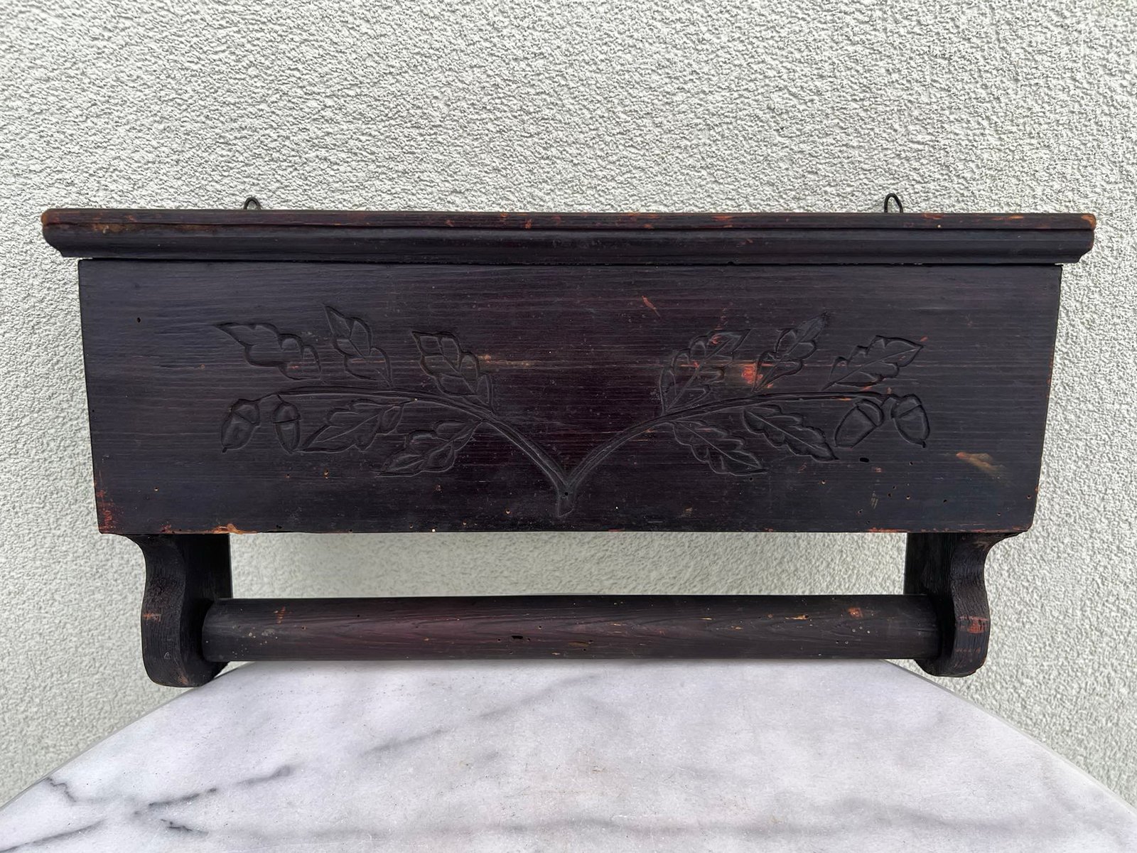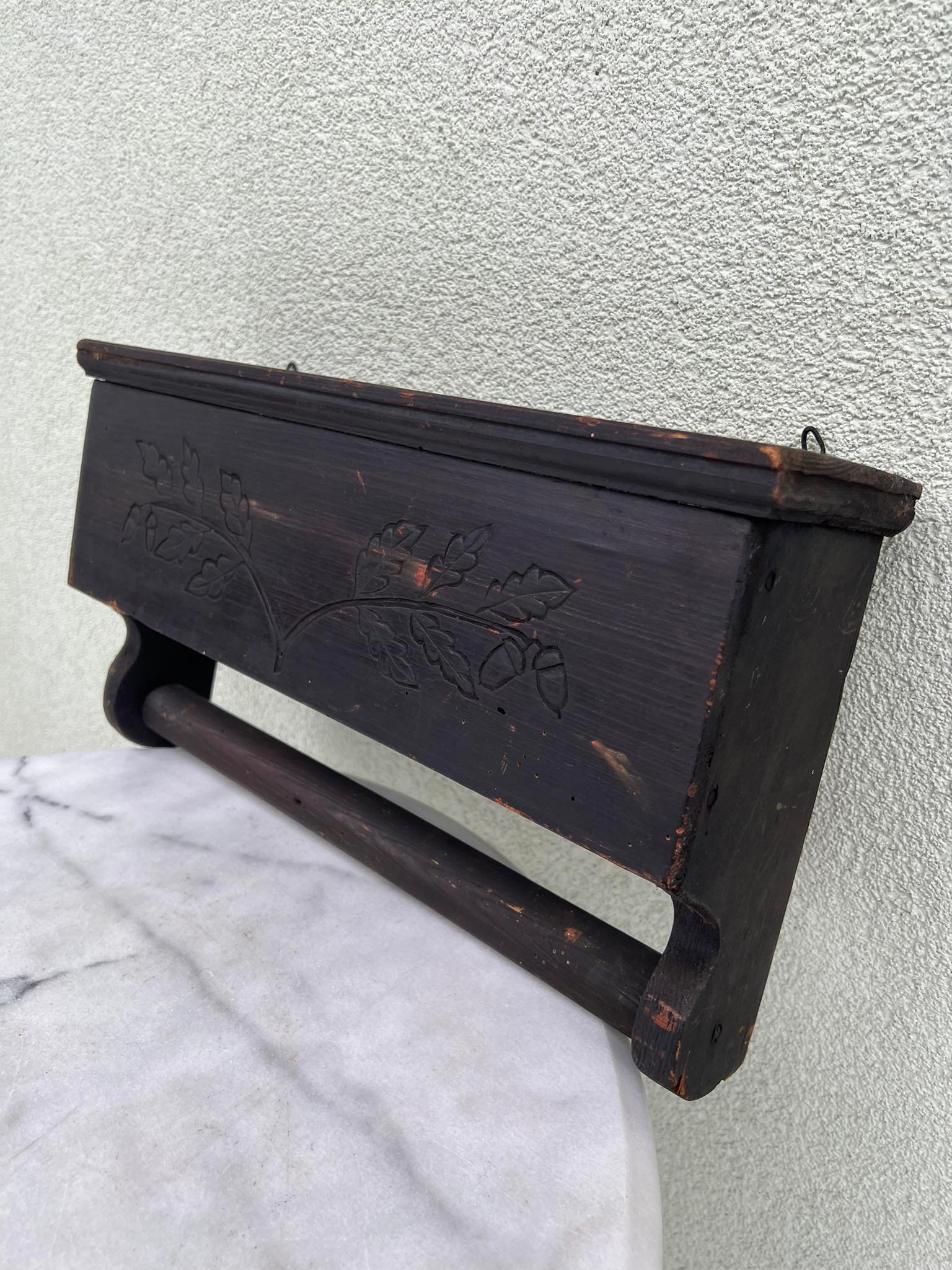 Rankšluostinė lietuviška, medinė, antikvarinė, puošta ąžuolo lapais. Ilgis 44, plotis 11, aukštis 25 cm. Kaina 128