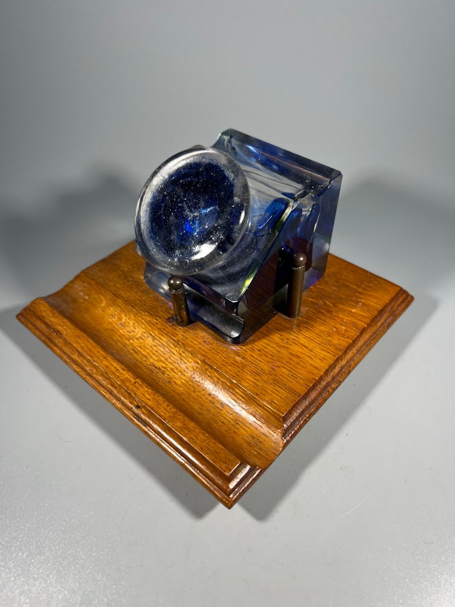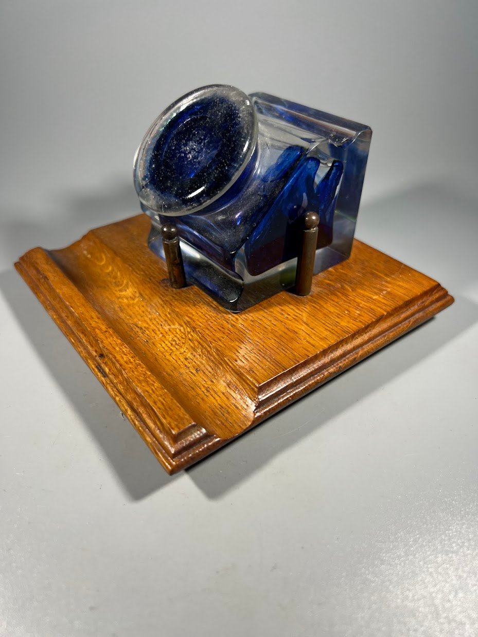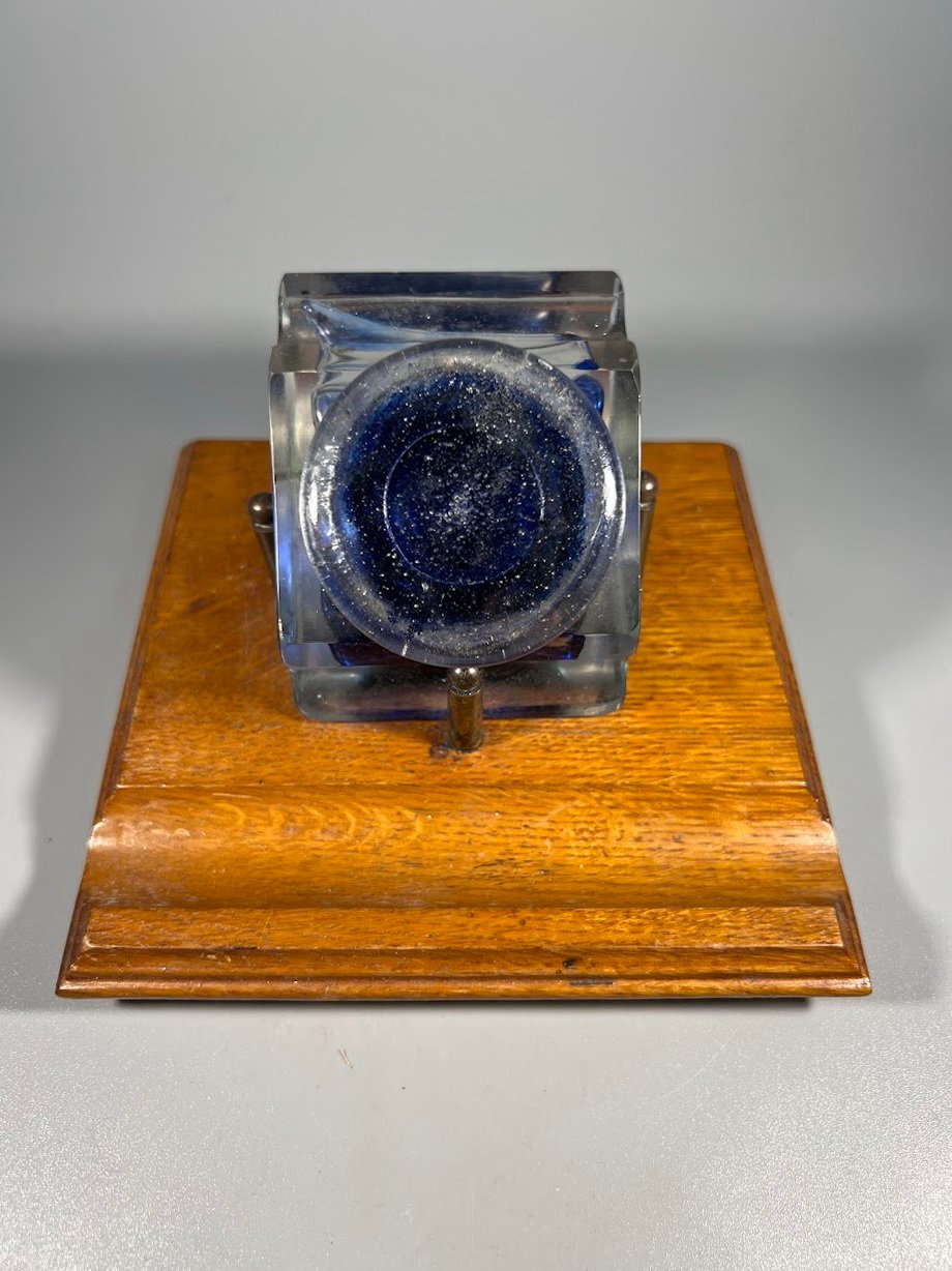 Raštinės komplektas, antikvarinis, rašalo buteliukas, rašalinė ant ąžuolinės lentelės. 1930 m. Pagrindo dydis: 13 x 13 cm. Kaina 87