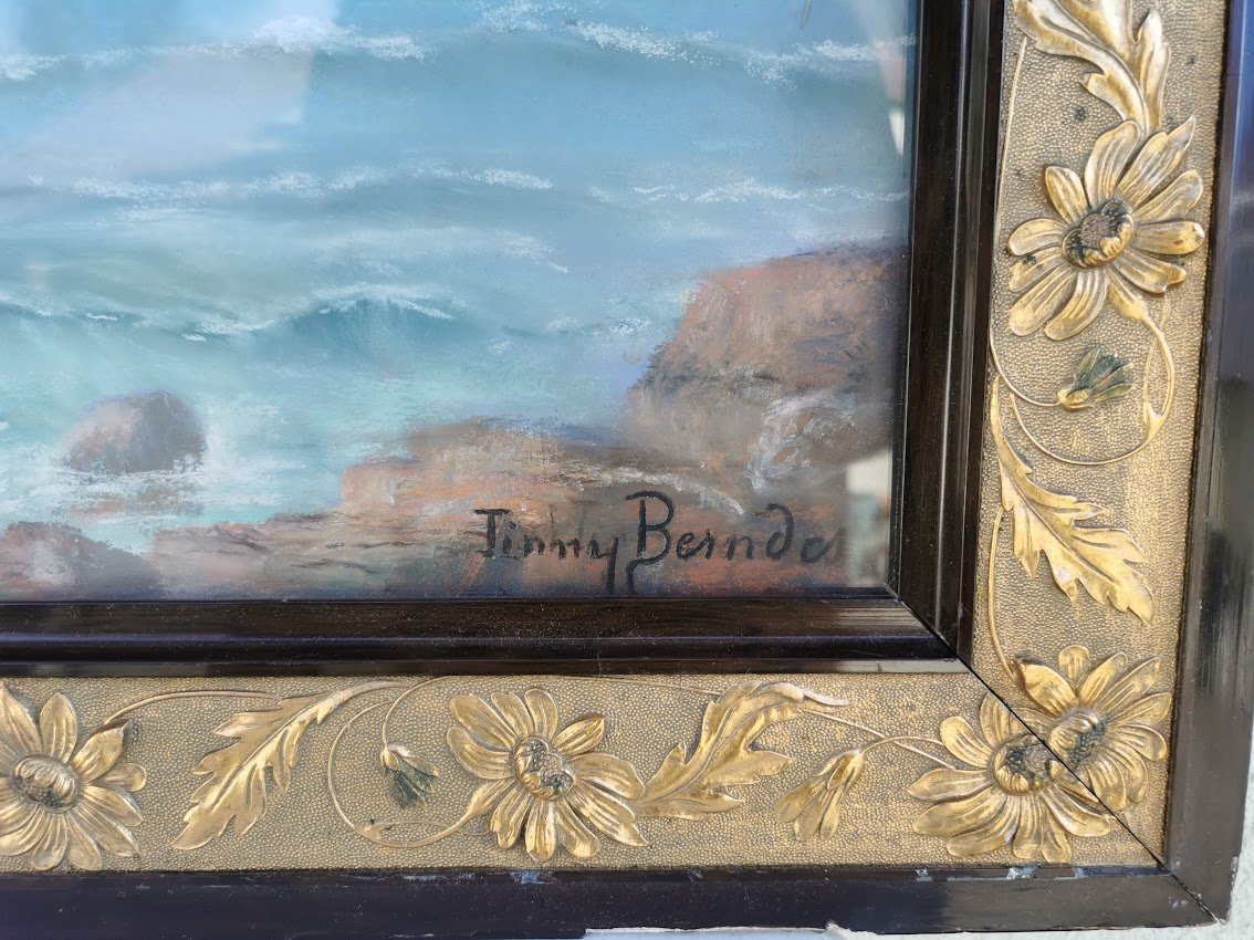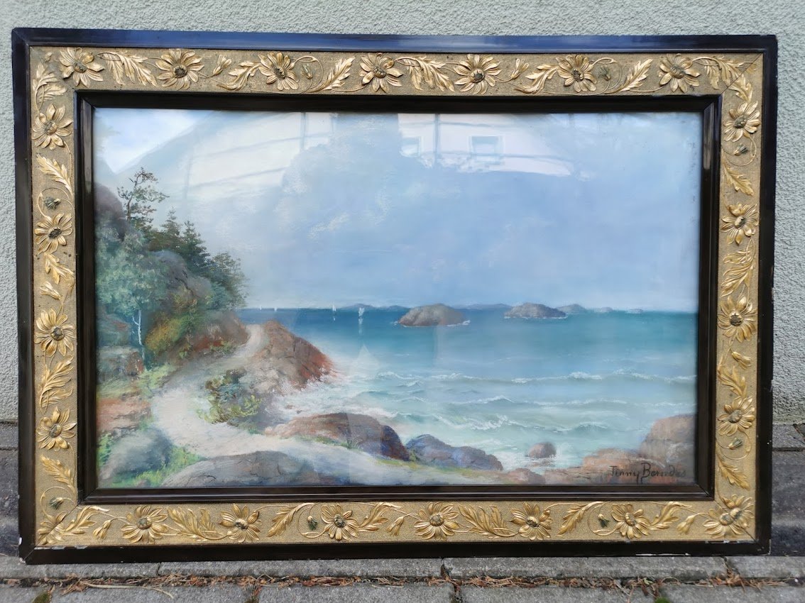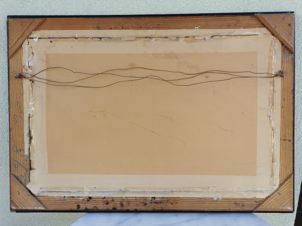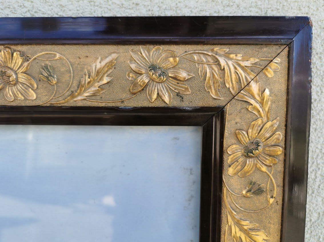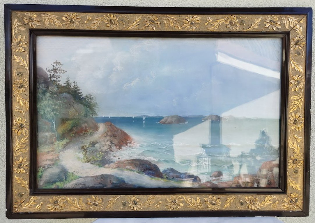 Rėmas medinis, auksuotas, paveikslas su stiklu, antikvarinis. Kaina 87