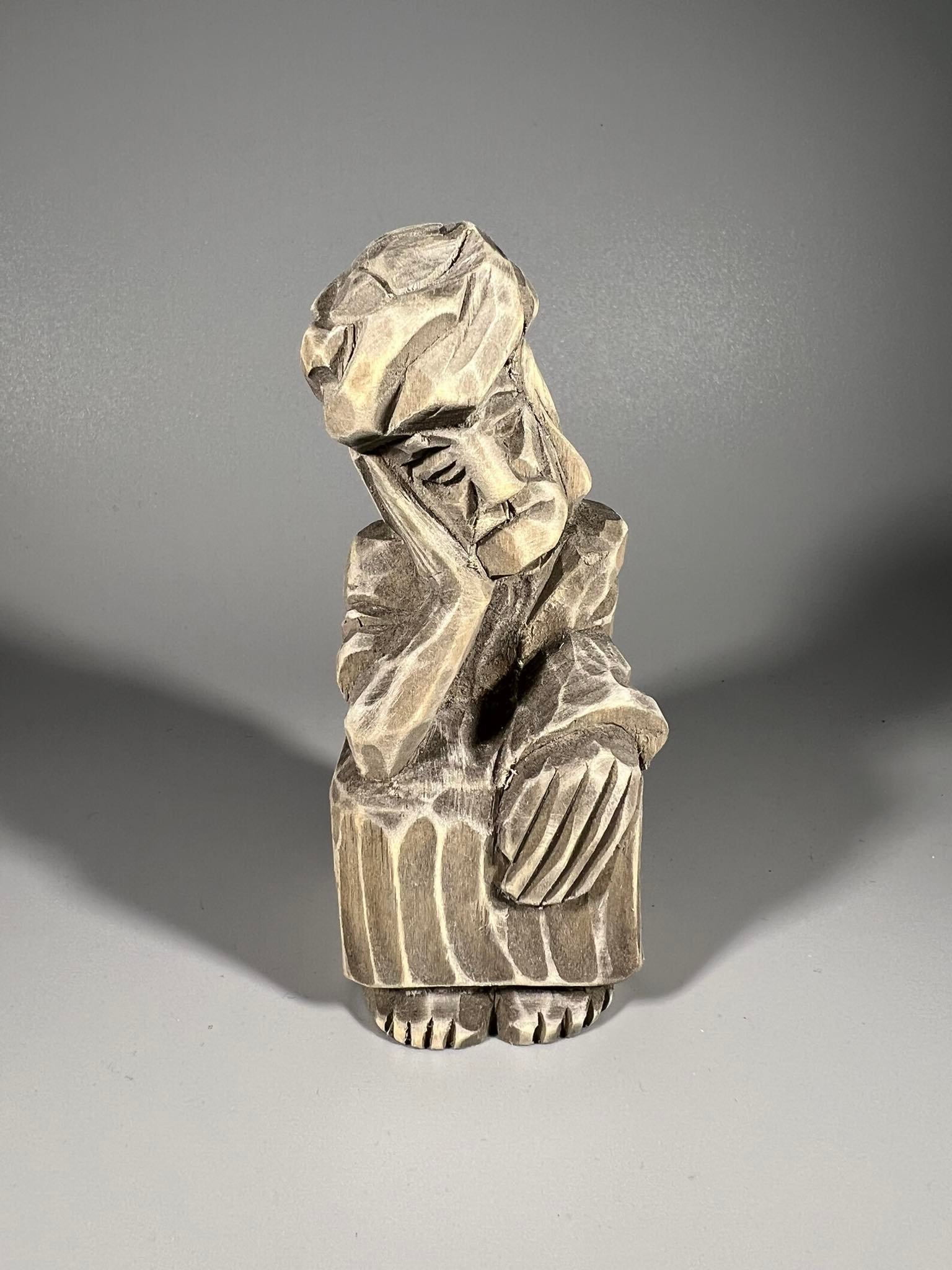 Rūpintojėlis medinis, drožinėtas. Aukštis 12 cm. Kaina 28