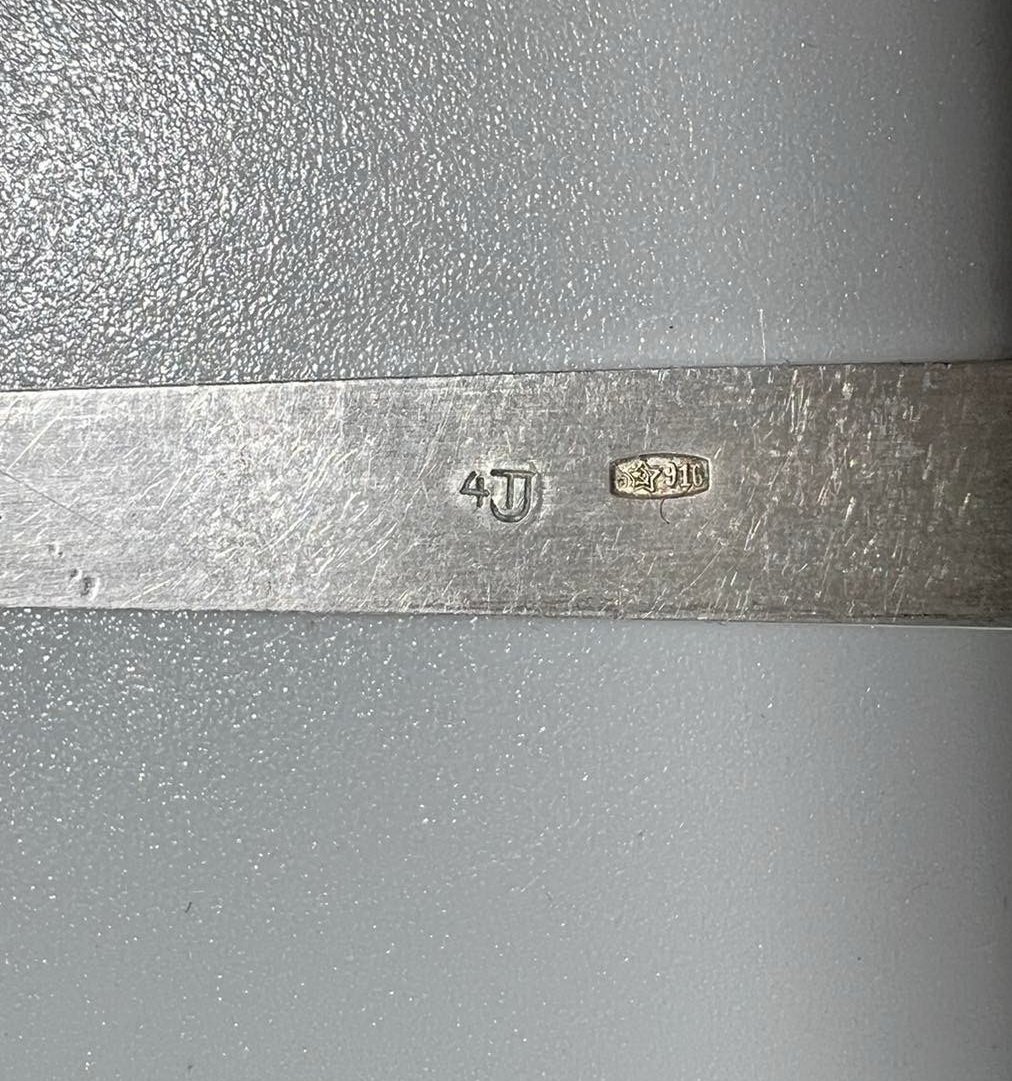 Šakutės desertinės, sidabrinės, antikvarinės tarybinių laikų. Praba 916. 5 vnt. Viso svoris 109 g. Kaina 258 už visas.