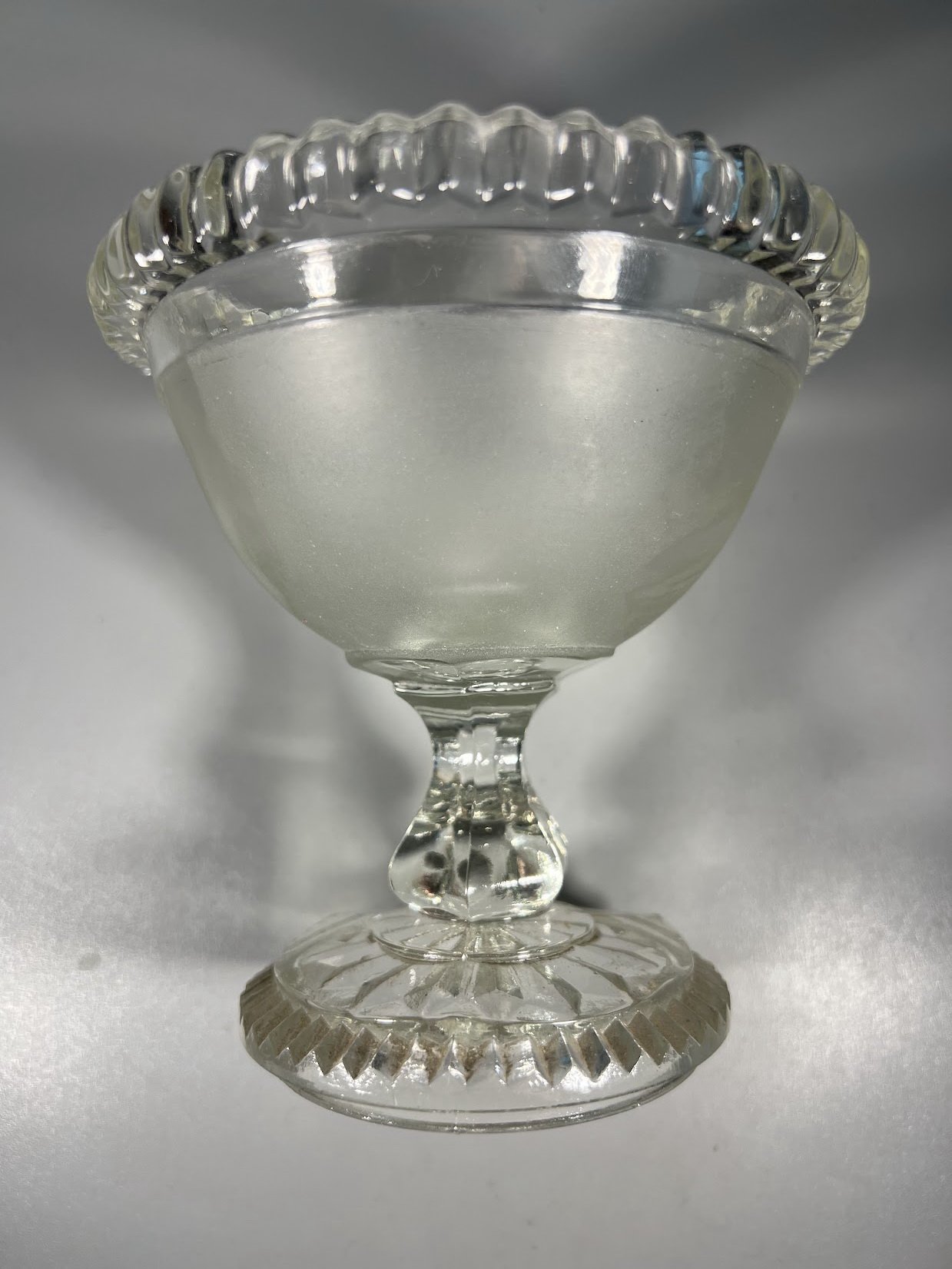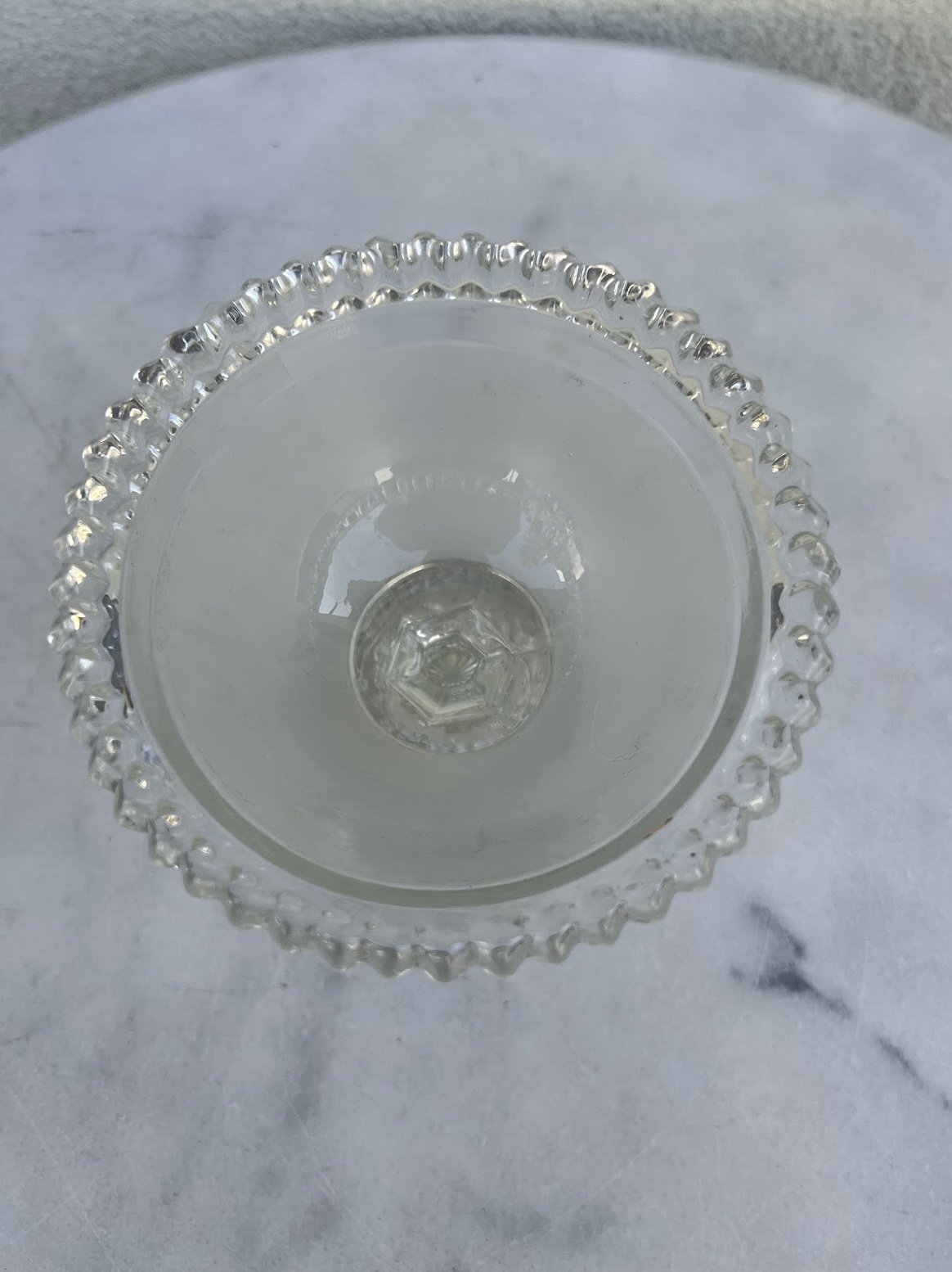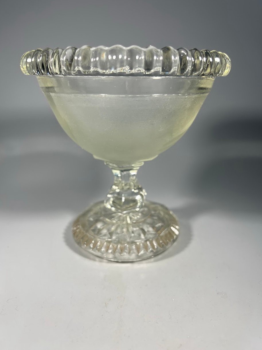 Saldaininė ant kojelės presuoto stiklo, antikvarinė. Kaina 18