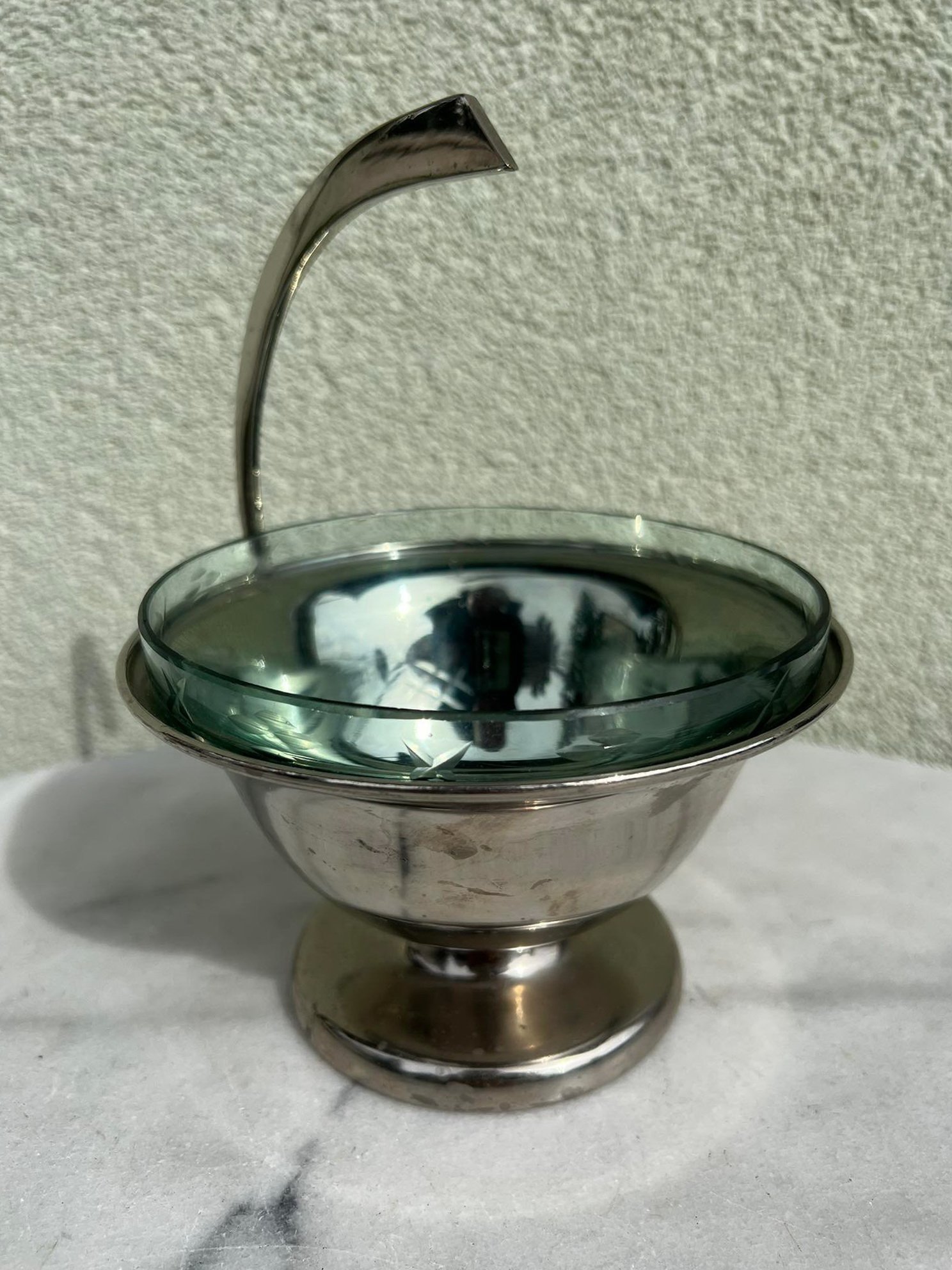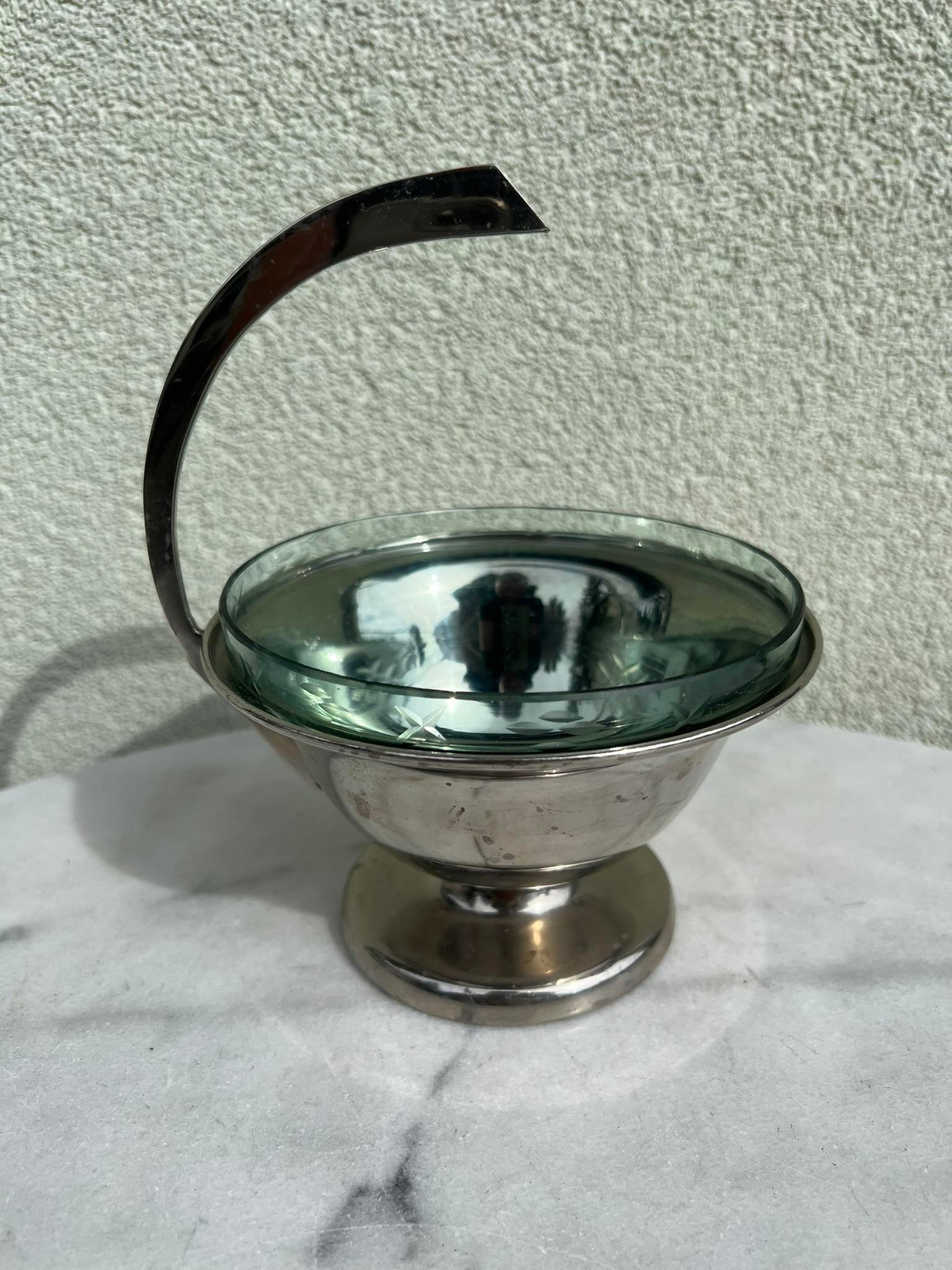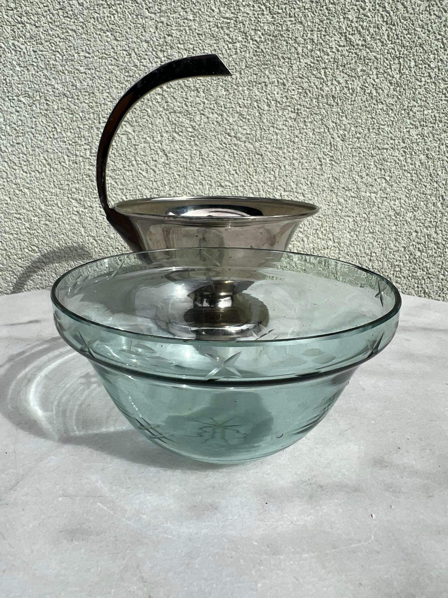 Saldaininė, sausaininė, indas su išimamu raižytu stiklu, antikvarinis. Kaina 43