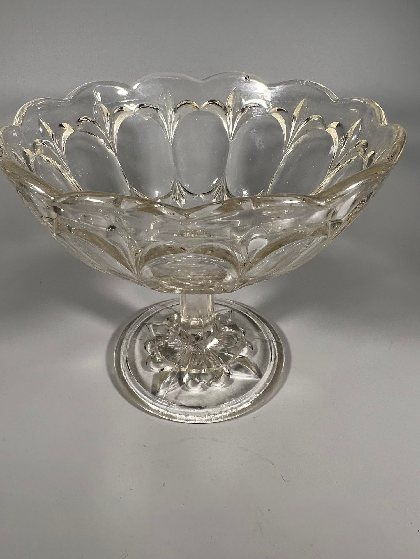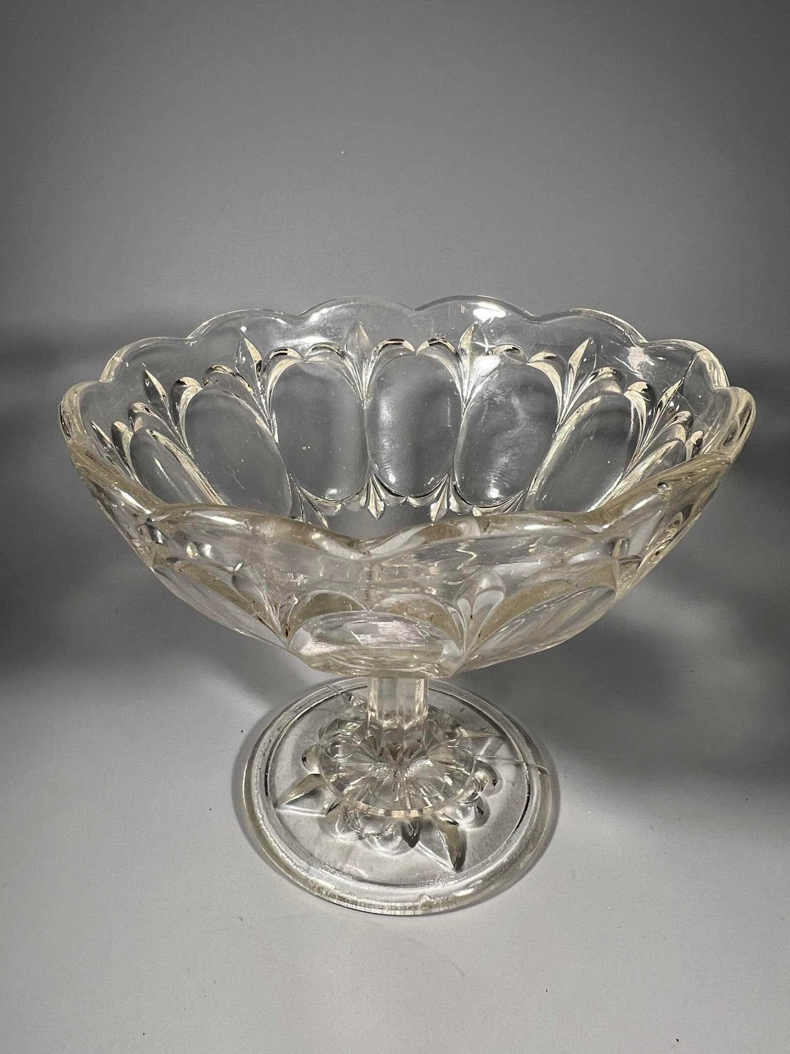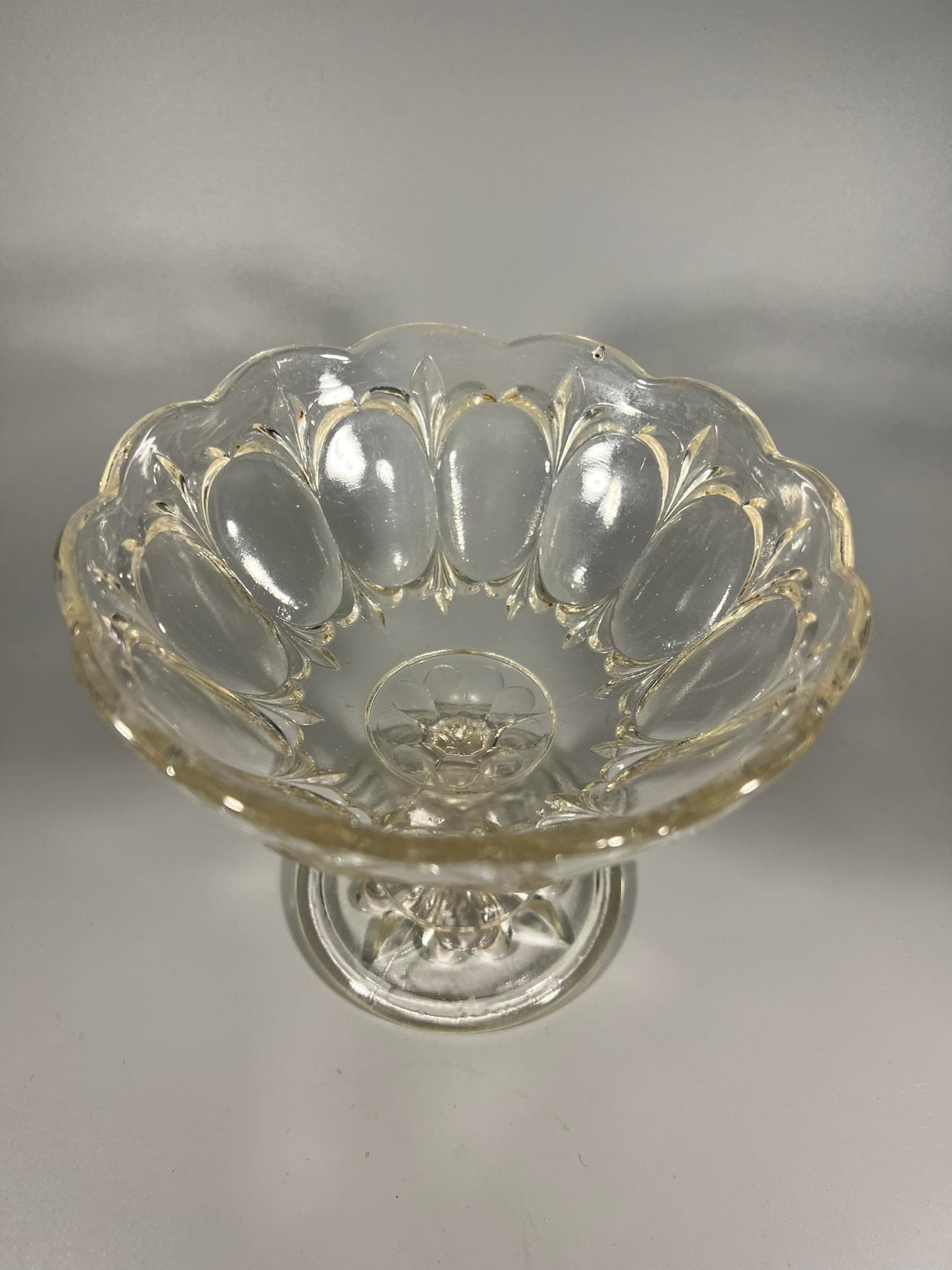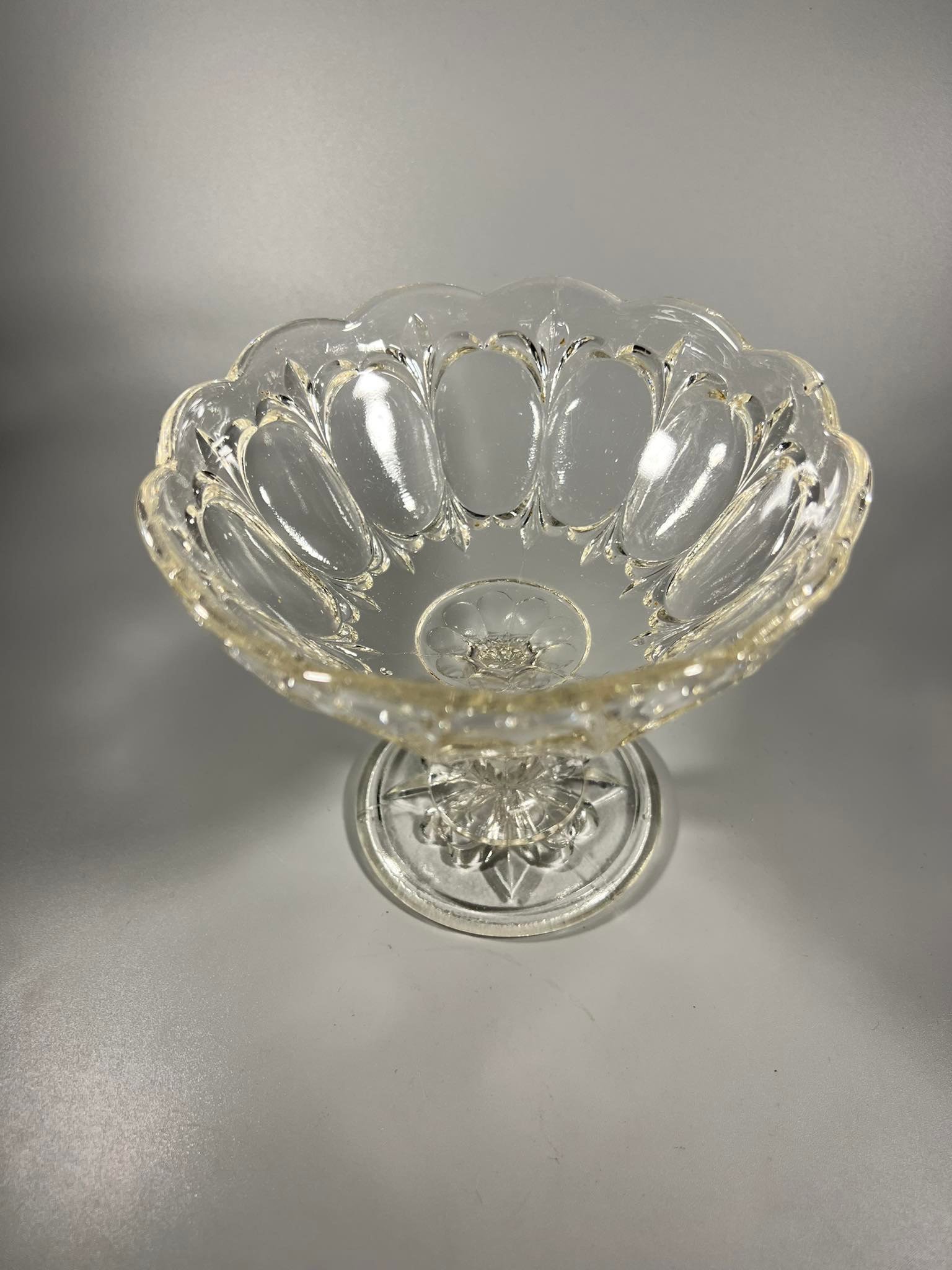 Saldaininė, stiklinis indas ant kojelės. Kaina 26