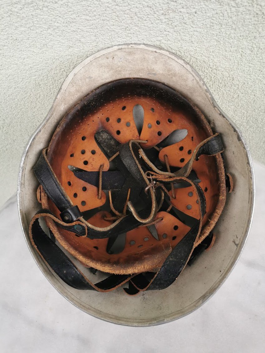 Šalmas gaisrininko vokiškas, originalas. DIN-14940–H2. Švyti tamsoje. Kaina 63