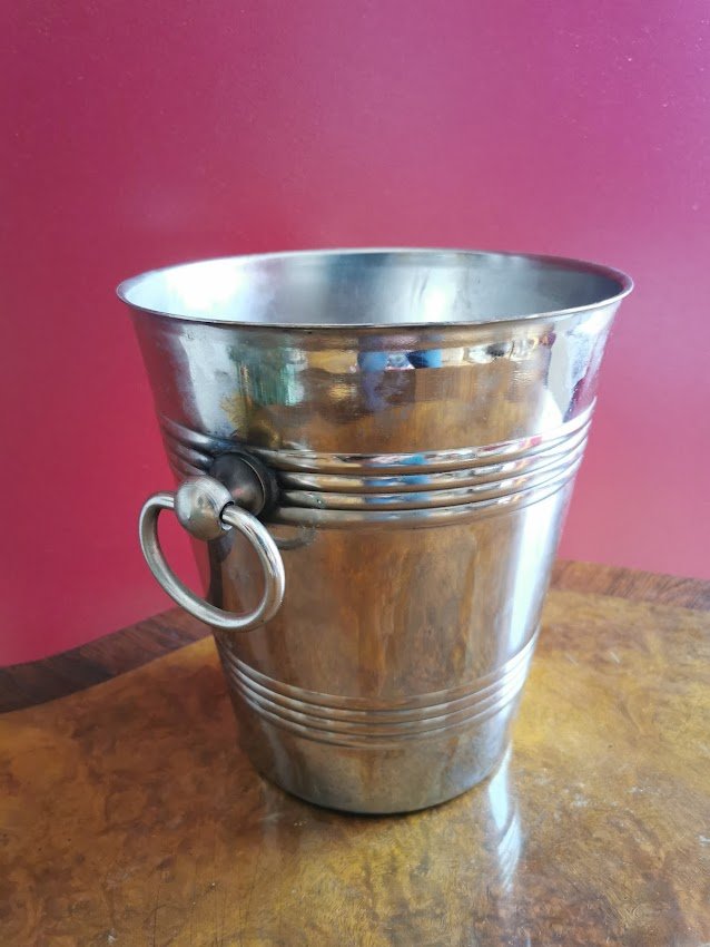 Šampaninė, indas šampano buteliui su ledukais, tarybinių laikų. Aukštis 22, skersmuo 20 cm. Kaina 33
