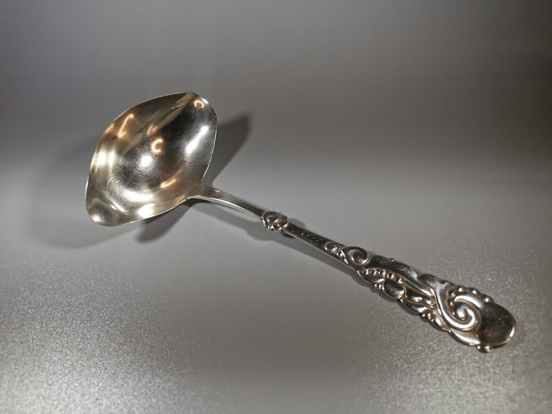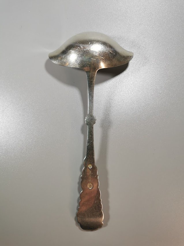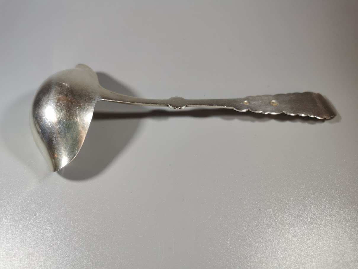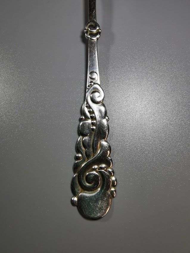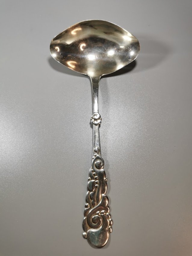 Samtelis padažui, sidabrinis, antikvarinis. Danija. Svoris 54 g. Praba 925 (3 bokštai). 1923 m. Ilgis 19 cm. Kaina 128