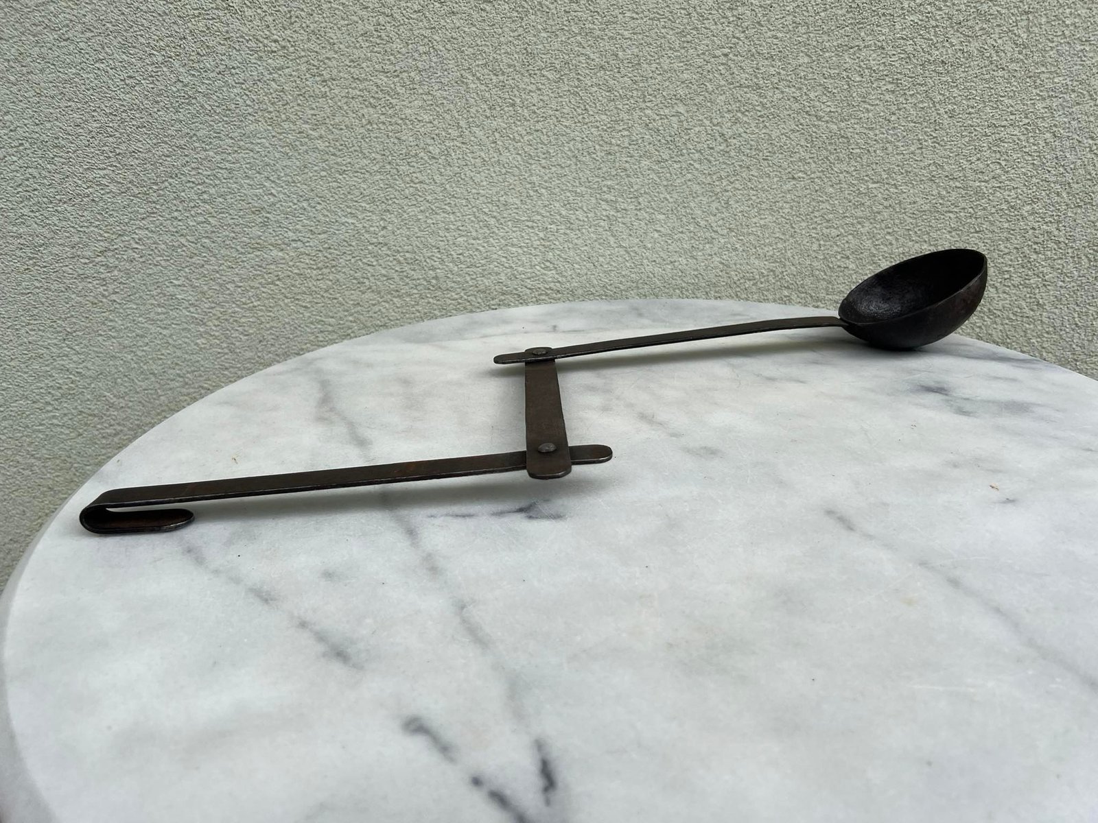 Samtis antikvarinis, kaltinis, sulankstoma rankena, kariškas. Svoris 500 g. Sulankstyto ilgis 34, atlenkus vieną dalį ilgis 50, išlanksčius visą, viso ilgis 68 cm. Kaina 88