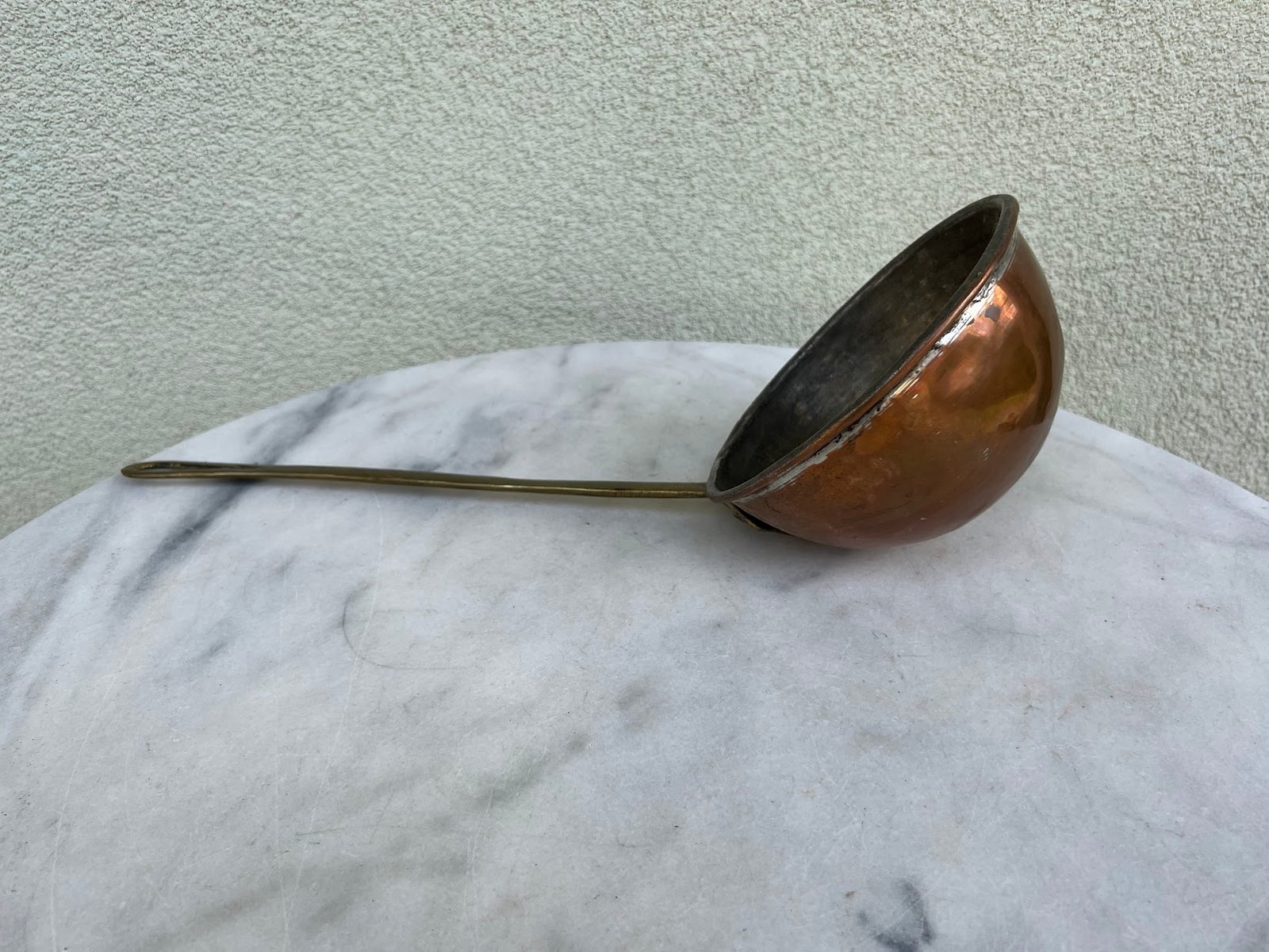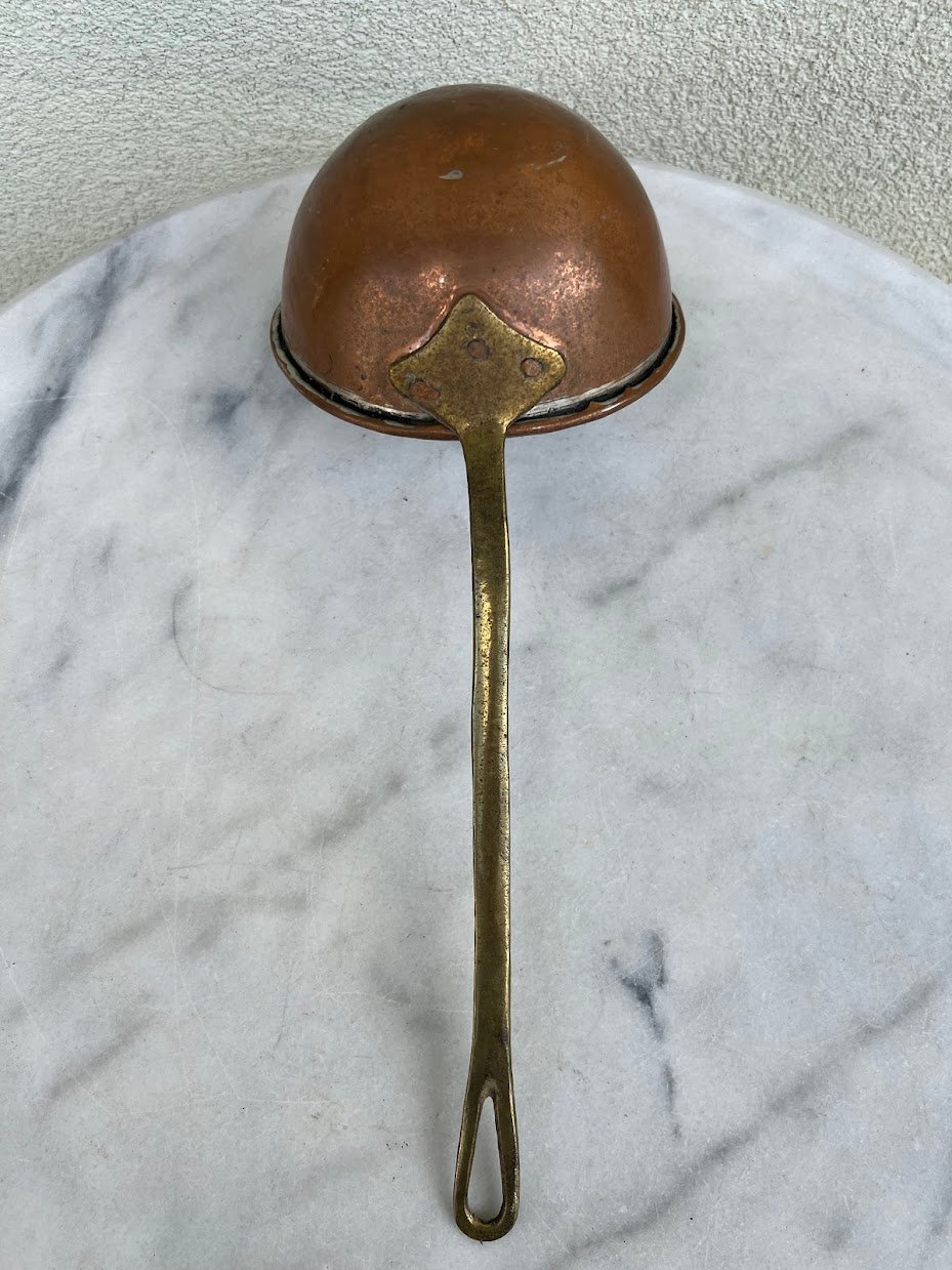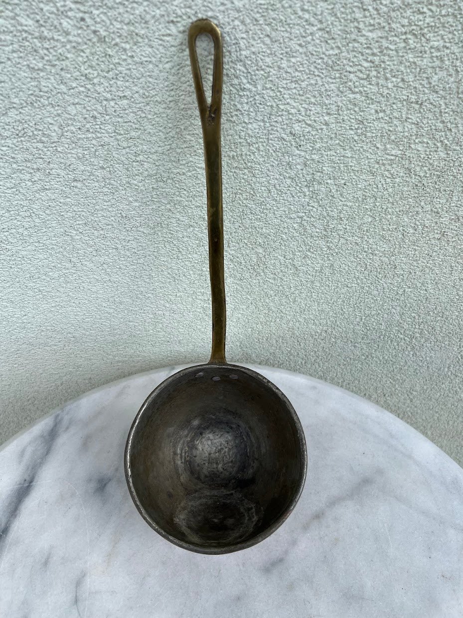 Samtis gilus, kaltinis, indas žalvarinis ilga rankena,vokiškas, pirties. Tvirtas. Ilgis 38 cm. Samčio aukštis 8, viršutinis skersmuo 15 cm. Kaina 43