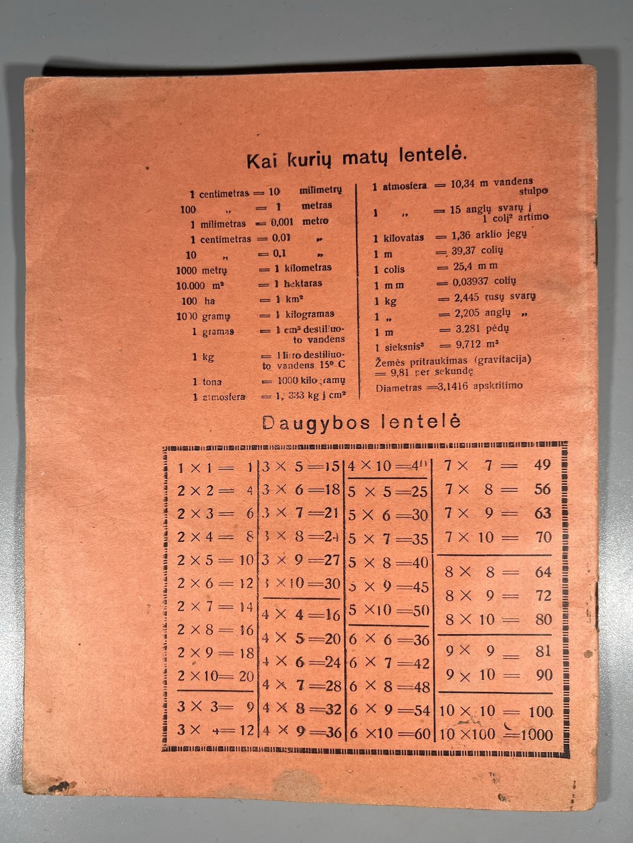 Sąsiuvinys tarpukario Lietuvos laikų. Kaina 16