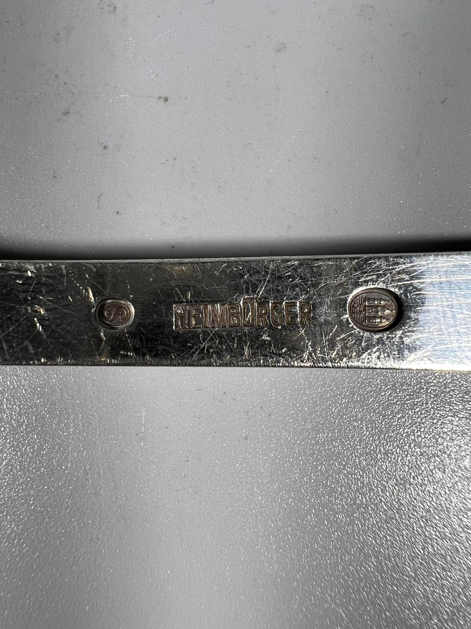 Šaukštas didžiulis, sidabrinis Heimbürger, antikvarinis. Danija. Svoris 109 g. Praba 925 (3 bokštai). Ilgis 27 cm. Būklė labai gera. Kaina 263