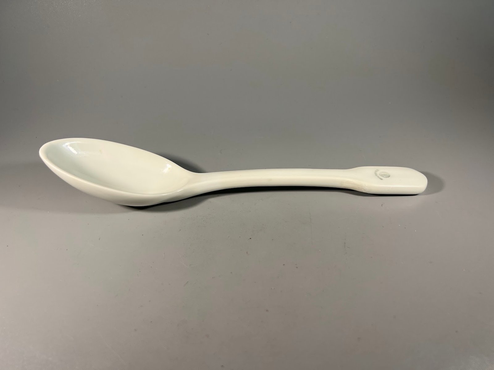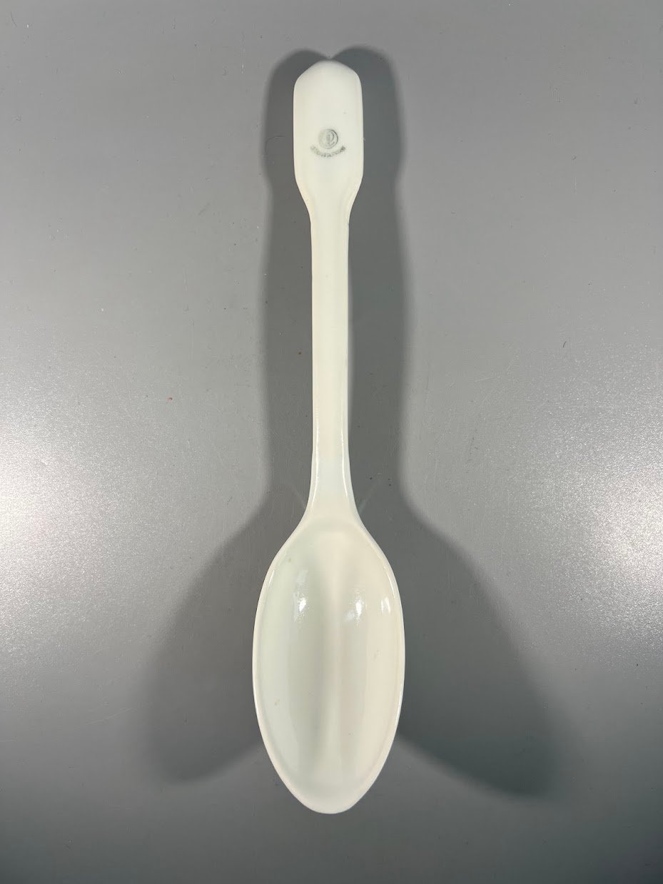 Šaukštas laboratorinis, medicininis, glazūruoto porceliano, atsparus rūgštims. Ilgis 23 cm. Kaina 16