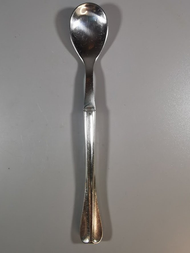 Šaukštelis sidabrinis, antikvarinis. Šaukštelio ilgis 14 cm. Svoris 21 g. Nerūdijančio plieno galas. Kaina 28