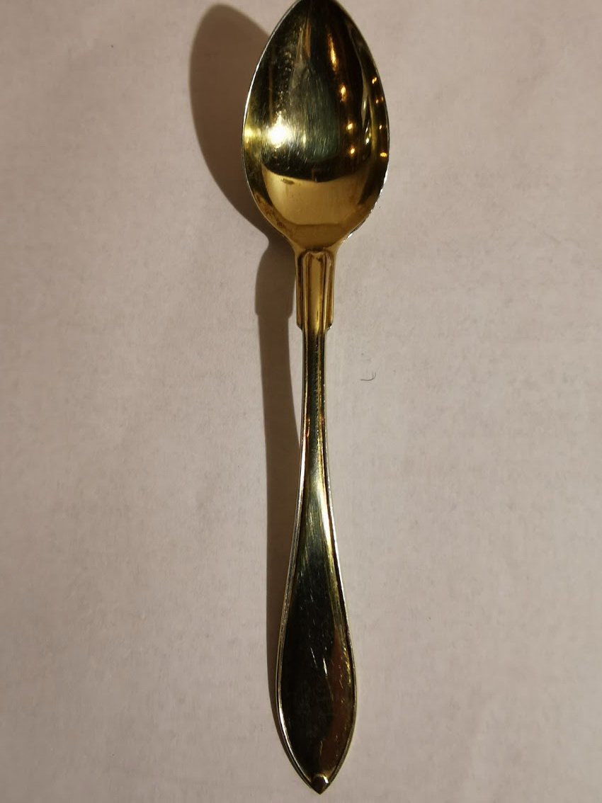 Šaukštelis sidabrinis, antikvarinis, prabuotas. 1916 m. Svoris 11 gr. Kaina 25