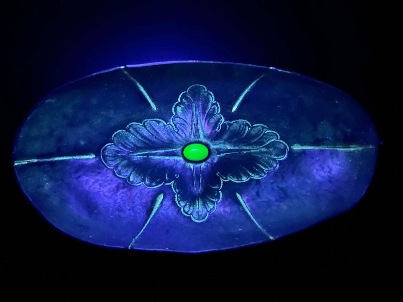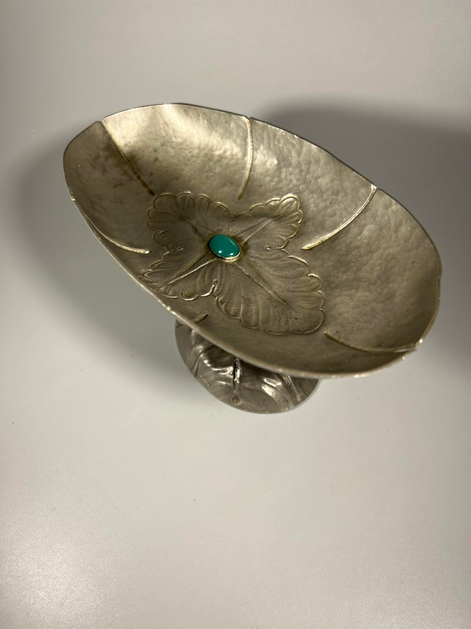 Sausaininė, saldaininė, antikvarinė, Art Nouveau stiliaus, alavinė, su šviečiančiu akmenu, Kunst HJ Tin, Danija, Kaina 53