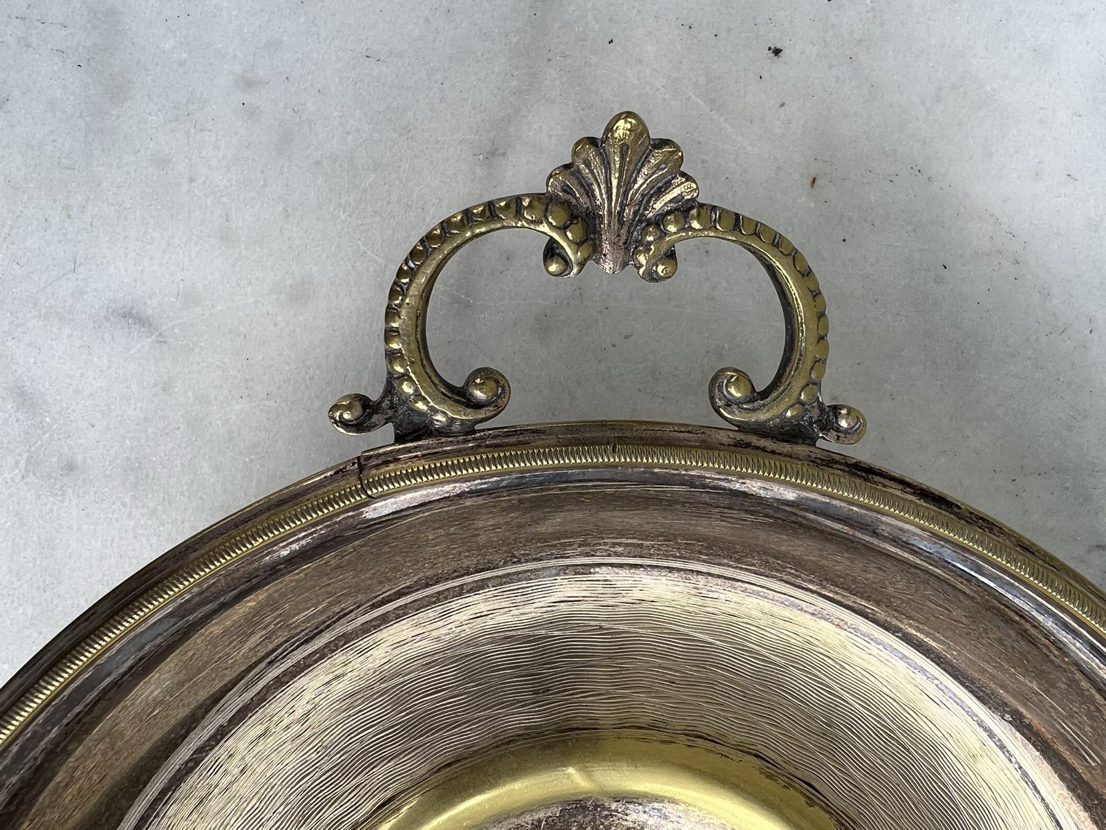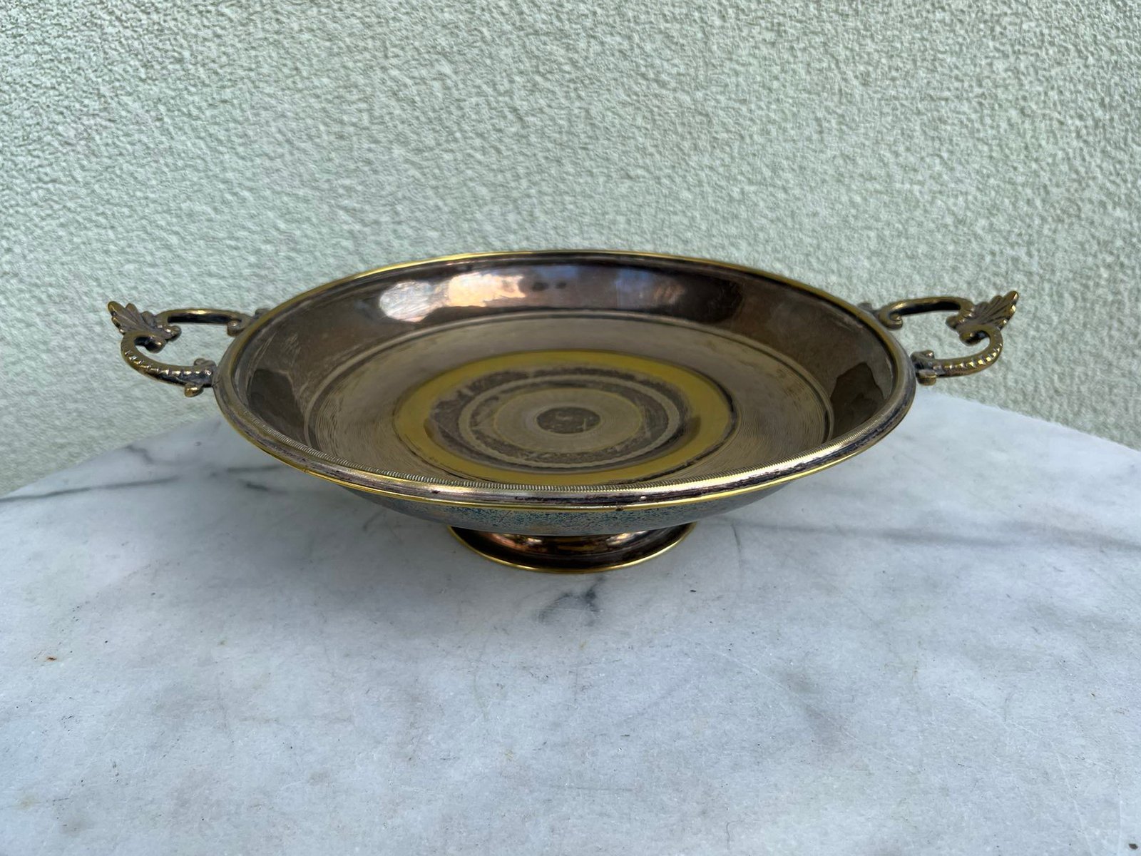 Sausaininė, saldaininė antikvarinė, sidabruota. Skersmuo be rankenų 24, aukštis 8 cm. Kaina 36