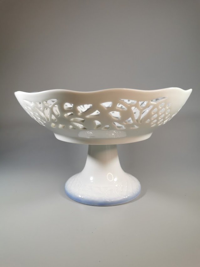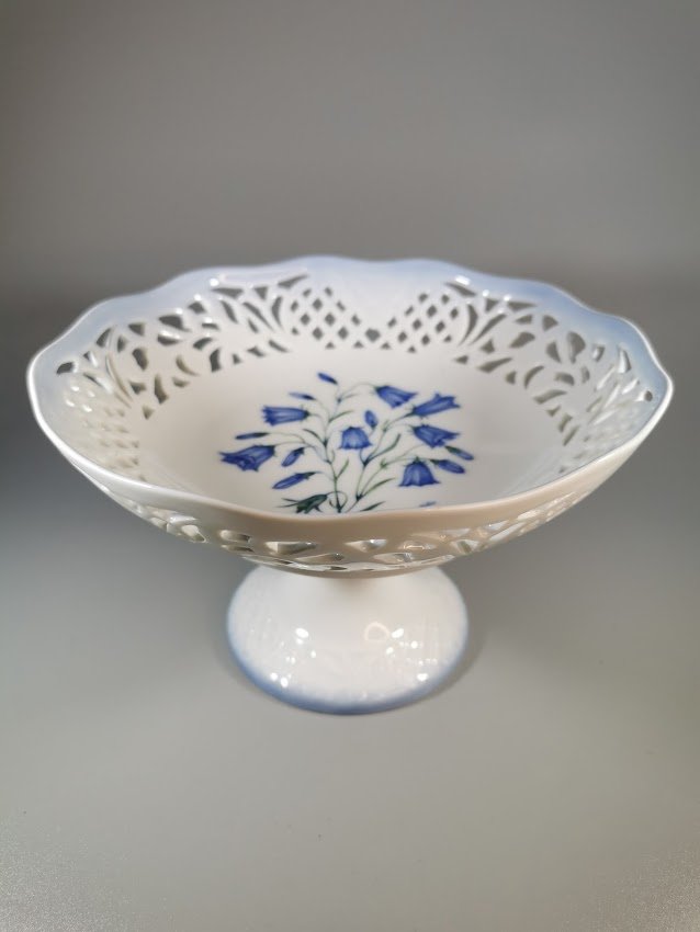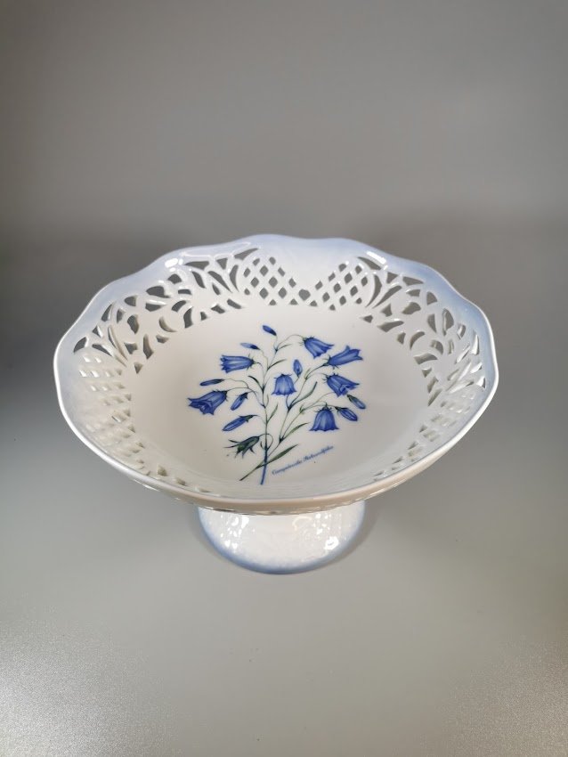 Sausaininė, saldaininė porcelianinė, augaliniais motyvais (Campanula Rotundfolia, Apskritalapis katilėlis), Danija. Aukštis 12, skersmuo 19 cm. Kaina 33