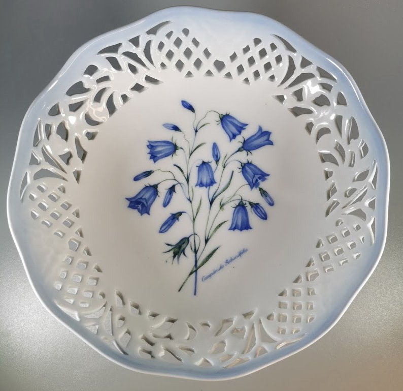Sausaininė, saldaininė porcelianinė, augaliniais motyvais (Campanula Rotundfolia, Apskritalapis katilėlis), Danija. Kaina 33