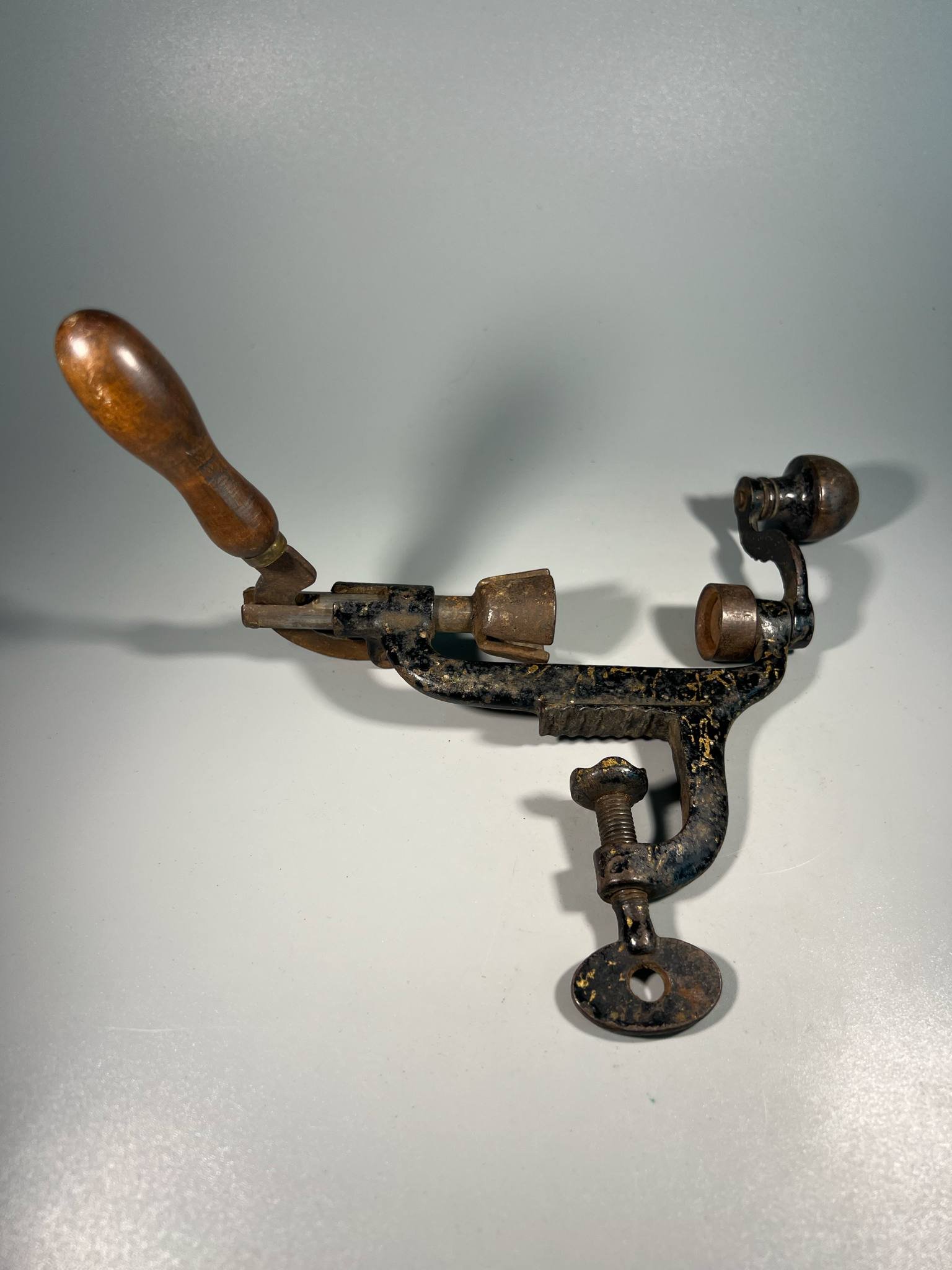 Pagrindinės detalės: Metalinis korpusas pagamintas iš ketaus su mechanizmu, skirtu užspausti tūtelės kraštus. Medinė rankena skirta patogiam ir tvirtam suėmimui. Užspaudimo mechanizmas: matosi speciali galvutė, kuri spaudžia tūtelės galą. Stalo spaustuvas (C-clamp): Įrankis turi apačioje esantį spaustuvą, skirtą pritvirtinti jį prie darbo stalo ar kito paviršiaus, kad būtų stabilus naudojimo metu. Tokio tipo rankiniai šovinių užspaudimo įrankiai buvo plačiai naudojami XIX amžiaus pabaigoje ir XX amžiaus pradžioje, kai žmonės patys persidarinėdavo šovinius namuose.