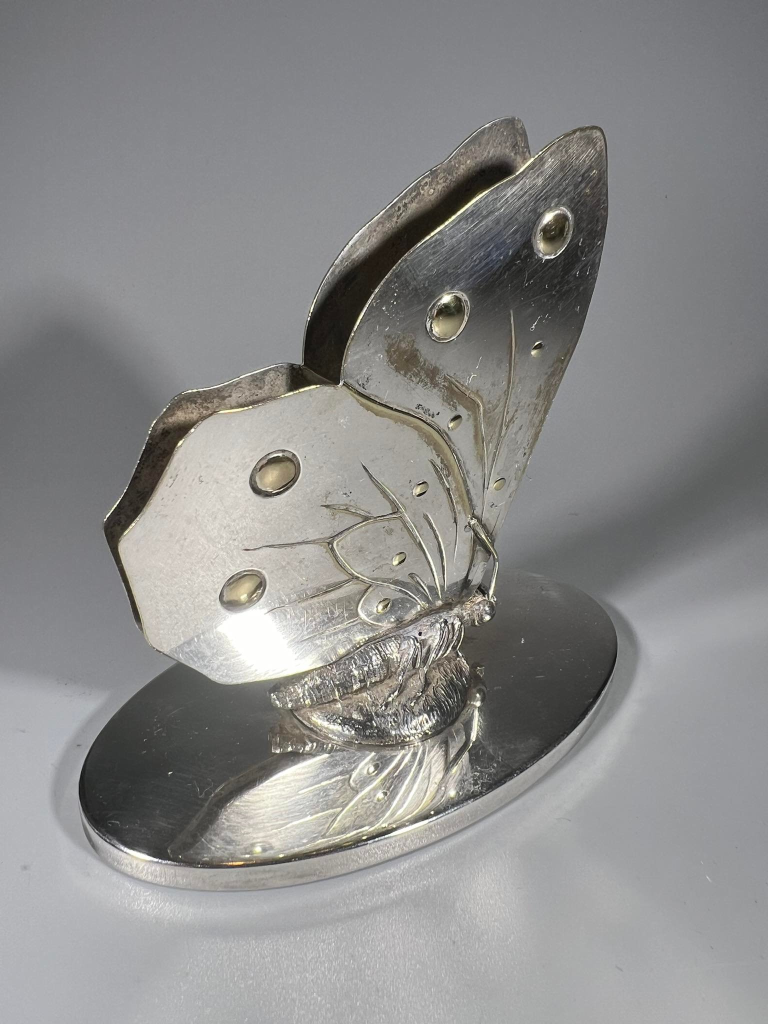 Servetėlėms Drugelis, metalinis, vintažinis, Art Deco stiliaus. Aukštis 11, ilgis 12, plotis 6 cm. Kaina 28