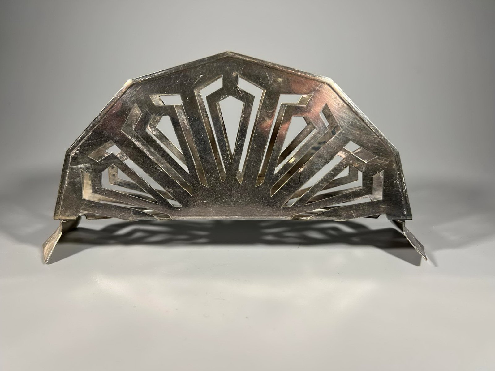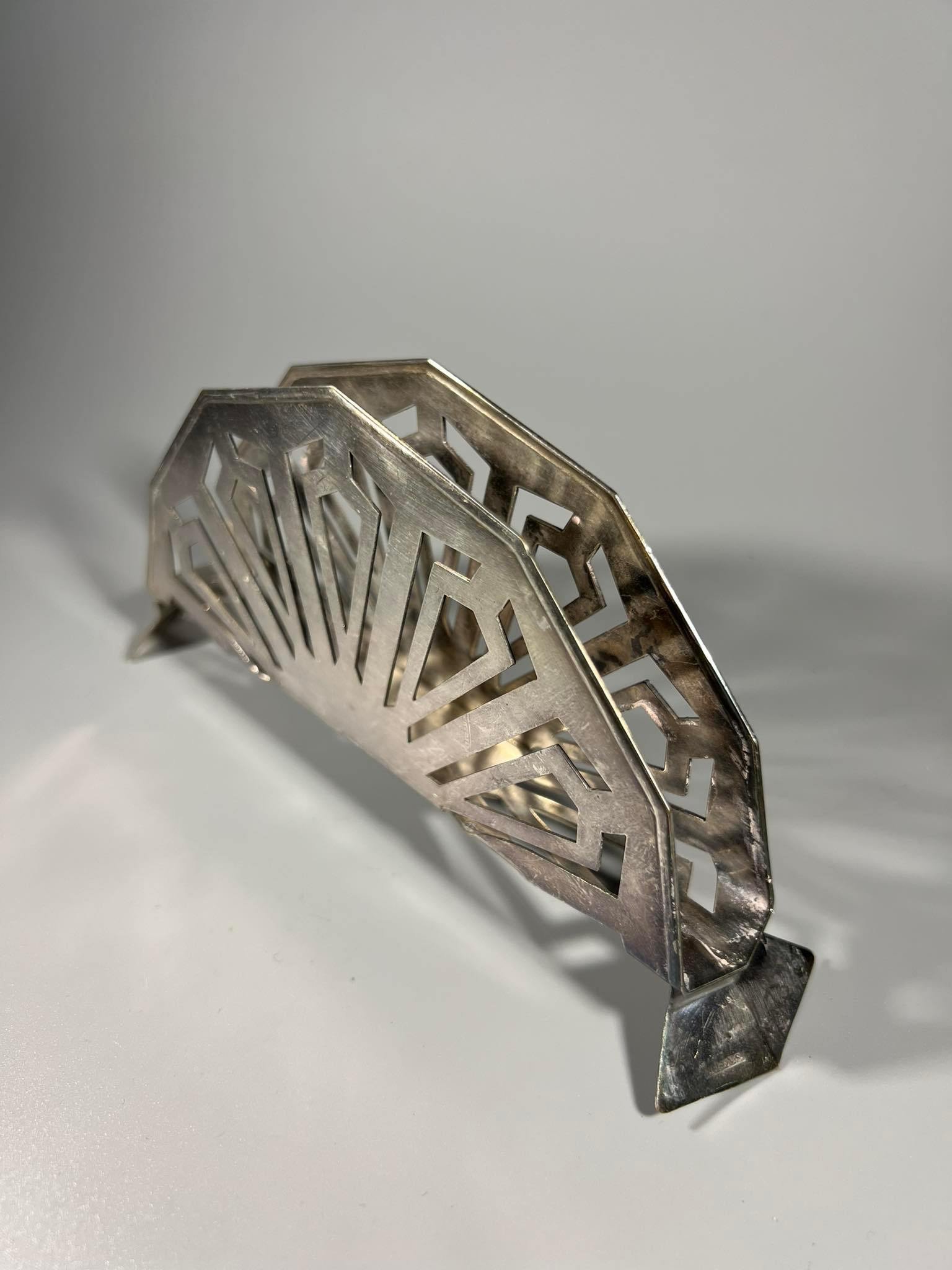 Servetėlių laikiklis ART DECO stiliaus, sidabruotas, antikvarinis, N. F. S. N.S. Ilgis 17, aukštis 8, plotis 4 cm. Kaina 23