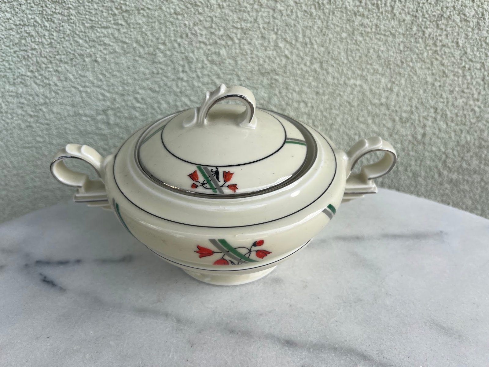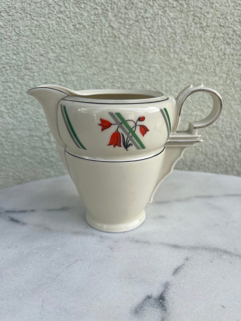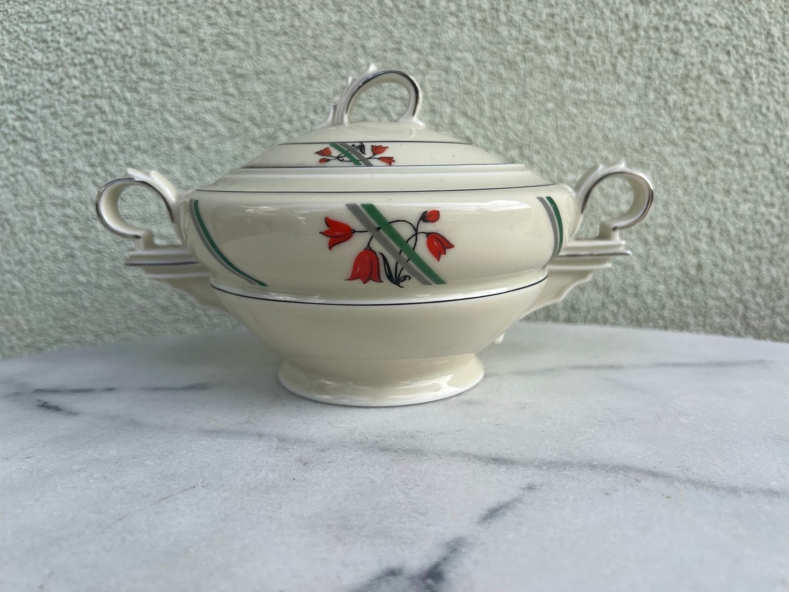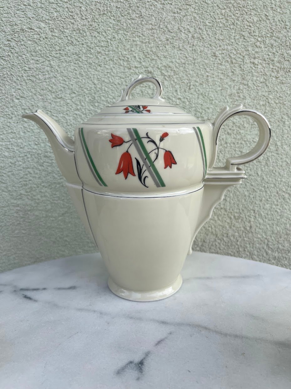 Servizas porcelianinis, antikvarinis, Art Deco stiliaus, tarpukario laikų Gebrüder Benedikt AG, Dvory (Mayerhöfen), nuo 1932 m. Epiag koncerno dalis. 1918-1939 m. Puodelio talpa 230 ml. Arbatinuko, kavinuko aukštis 24 cm. Kaina 488