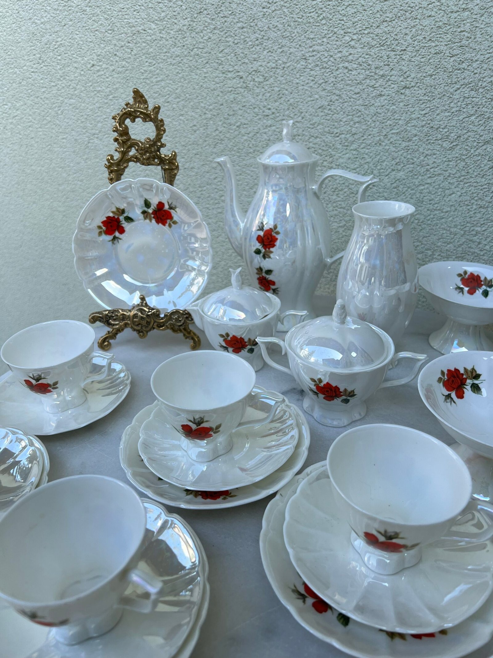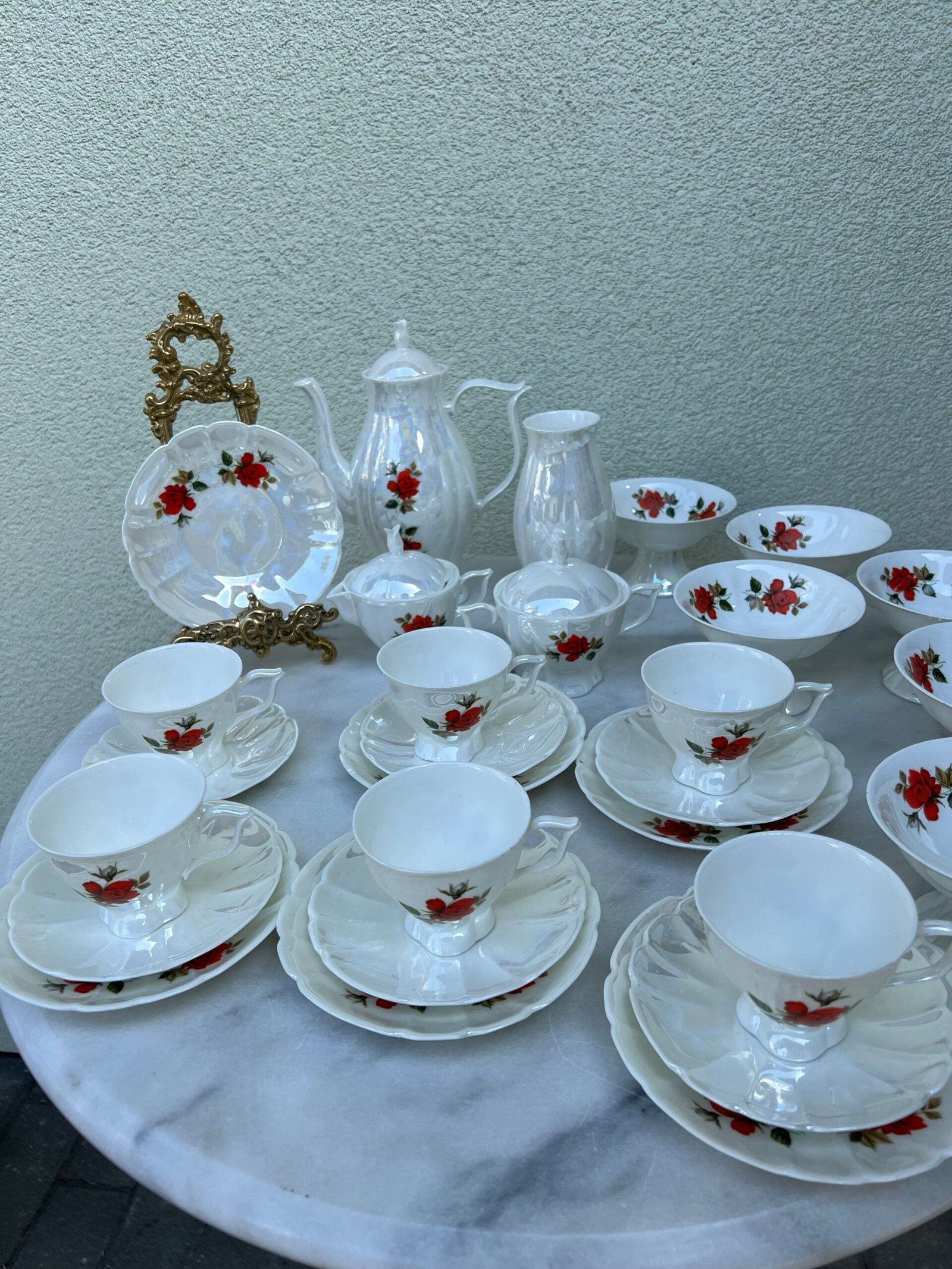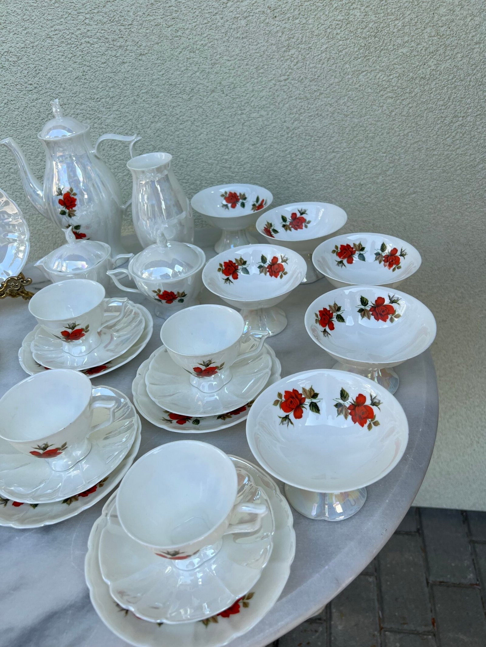Servizas su ledainėmis Jiesios kaulinio porceliano. Kaina 73 už viską.