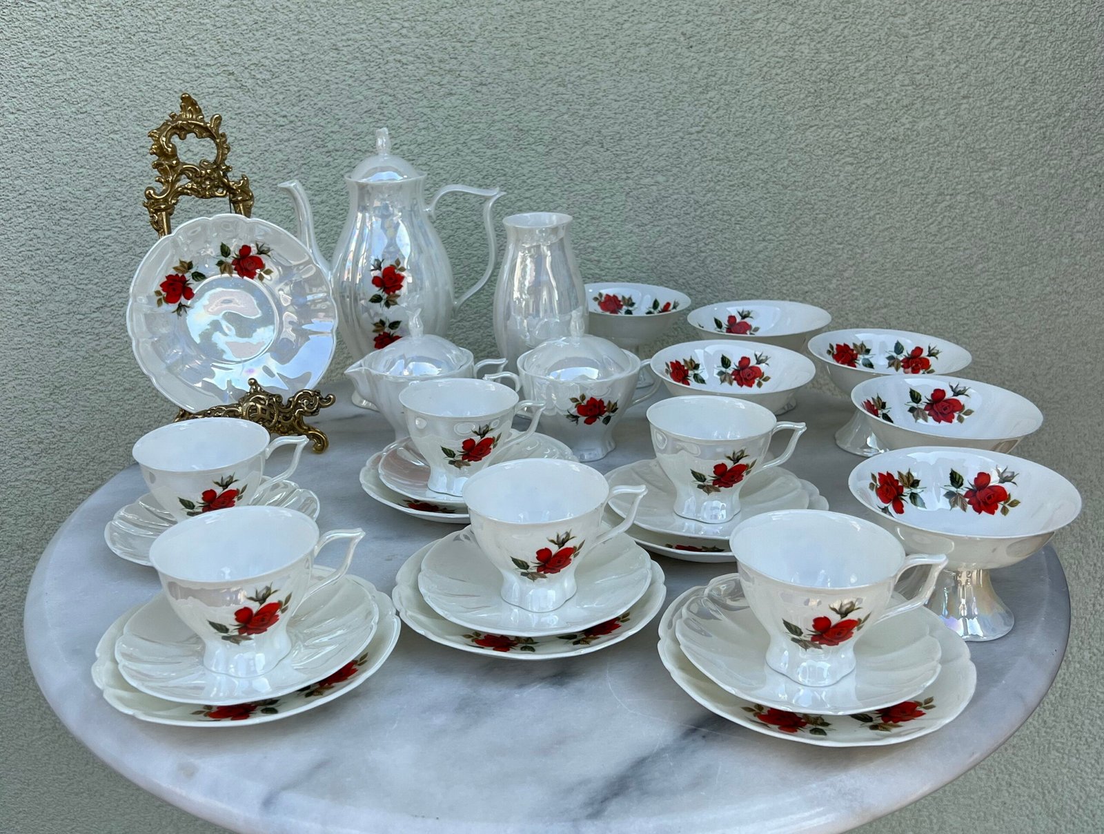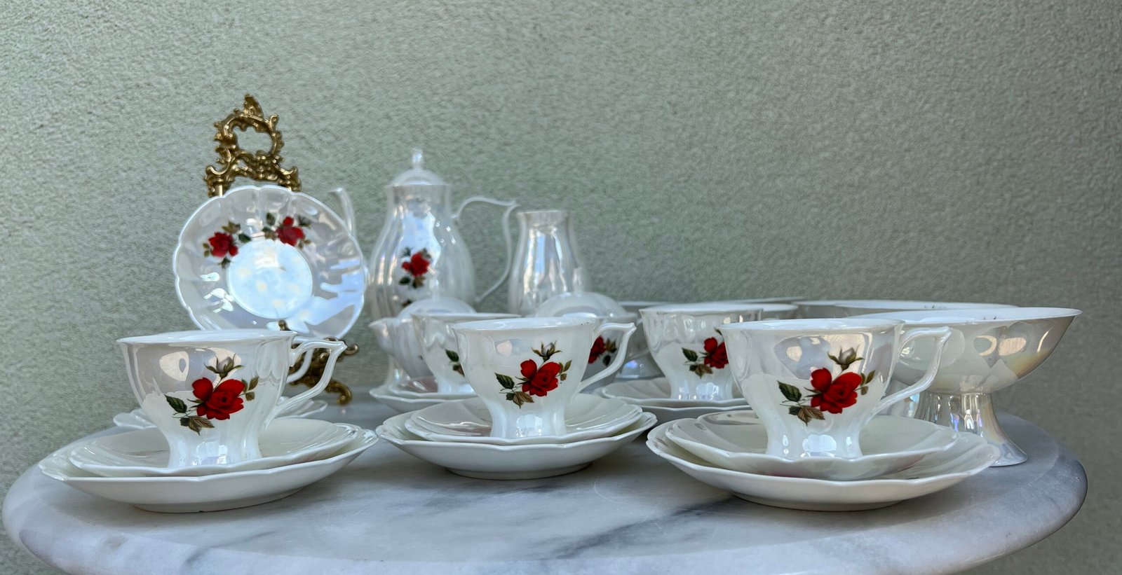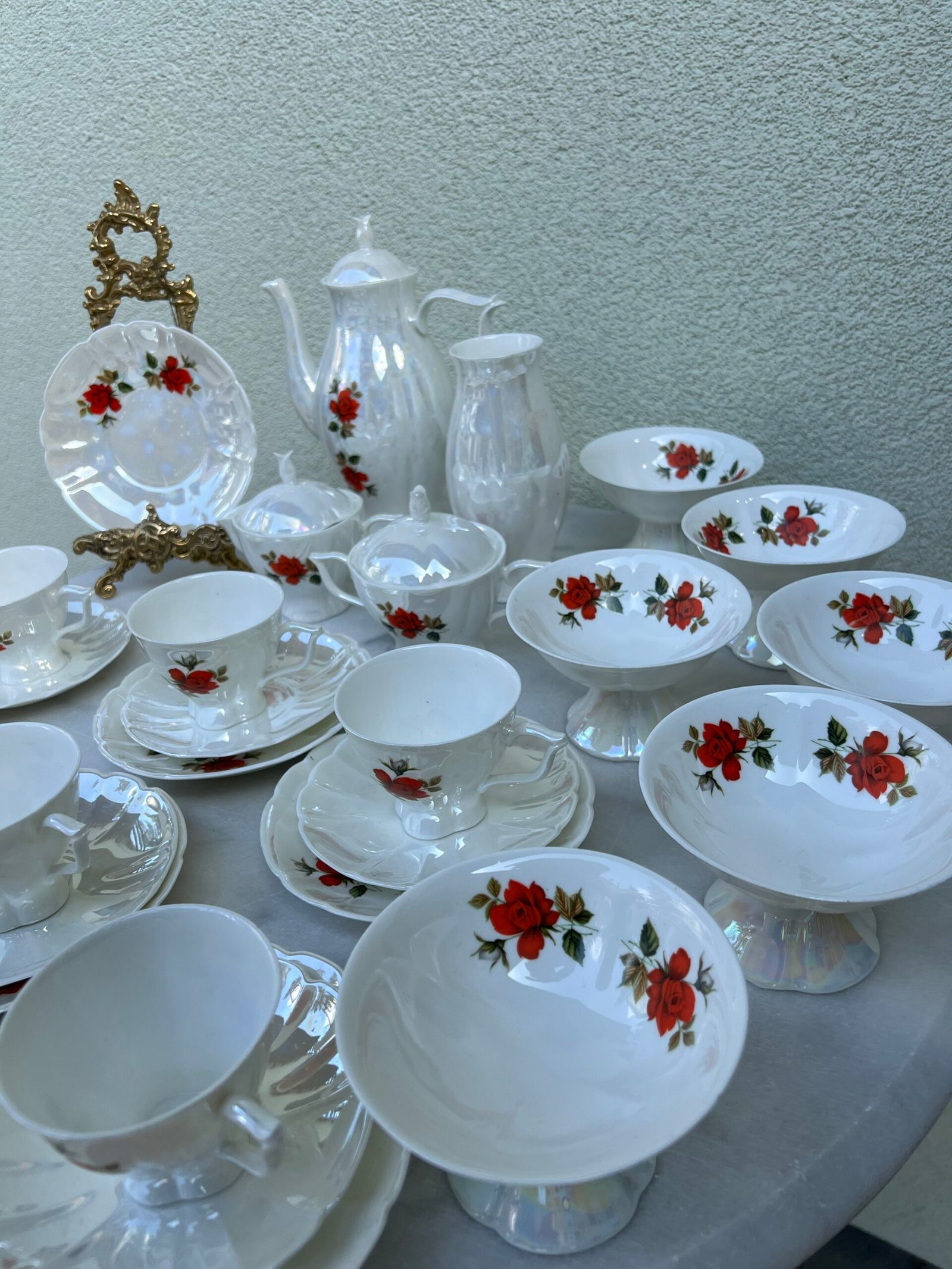 Servizas su ledainėmis Jiesios kaulinio porceliano. Kaina 73 už viską.