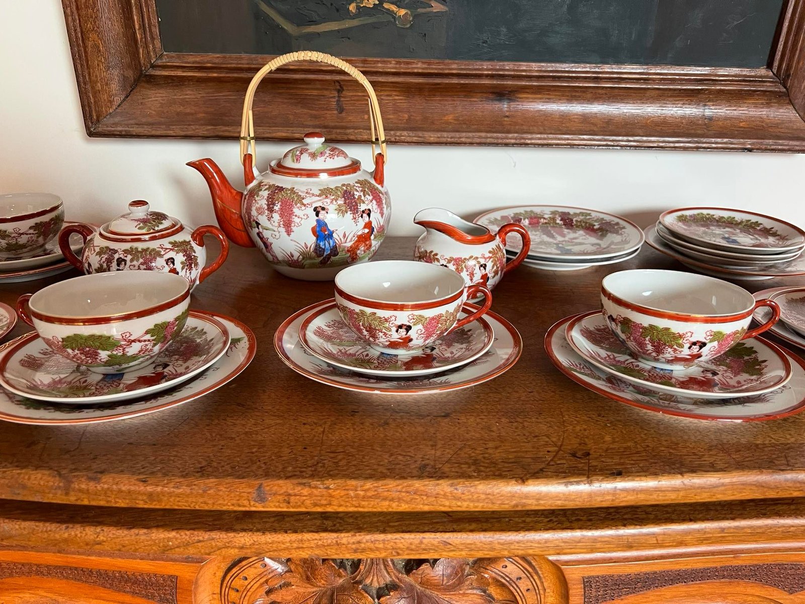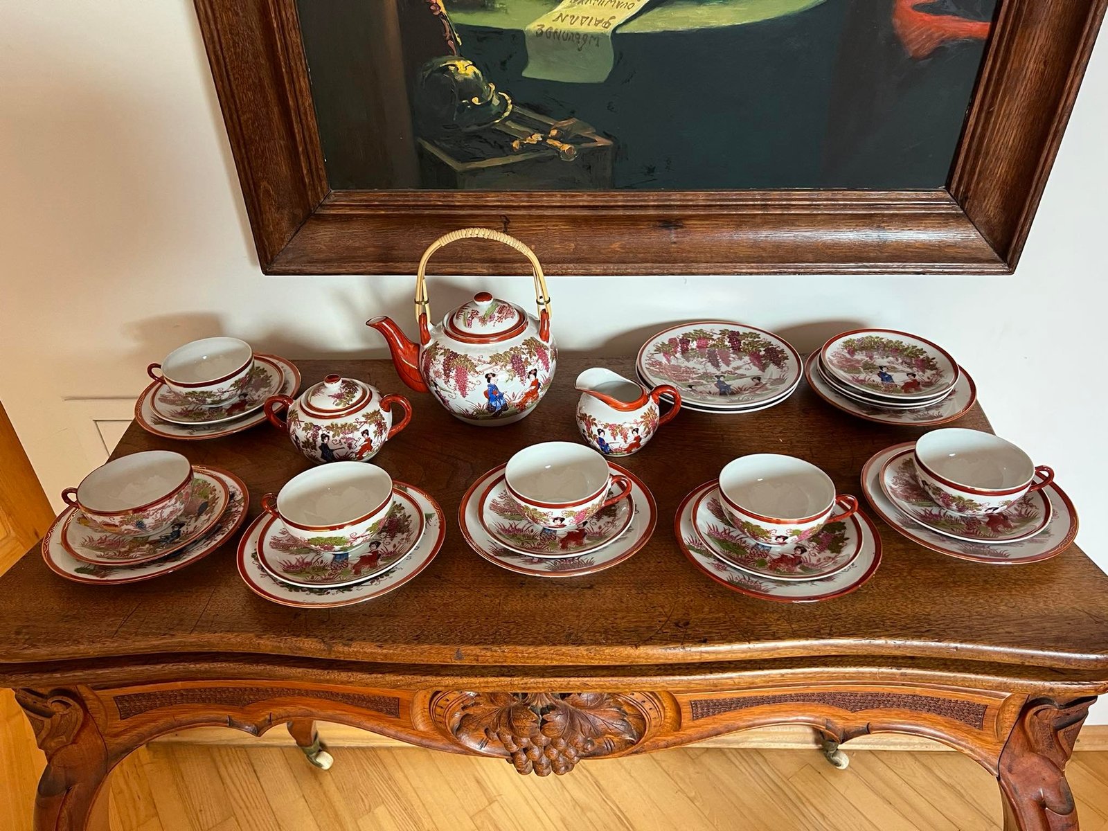 Servizas su litofanija, plono porceliano, Japoniškas 6 asmenims su papildomomis lėkštutėmis. Puodelio talpa 150 ml. Kaina 68