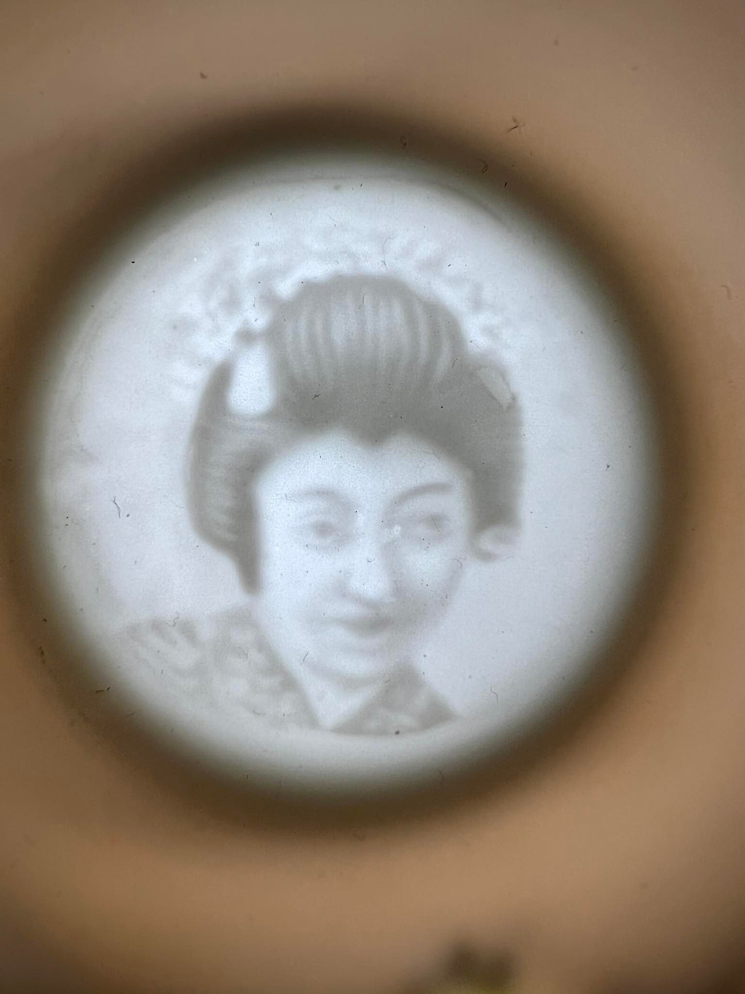 Servizas su litofanija, plono porceliano, Japoniškas. Puodeliai su lėkštutėmis, kavinukas, cukrinė, grietinėlės indas – pieninukas. Kaina 87