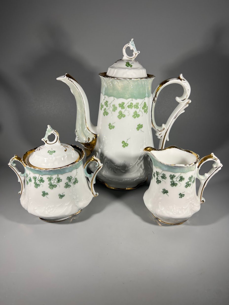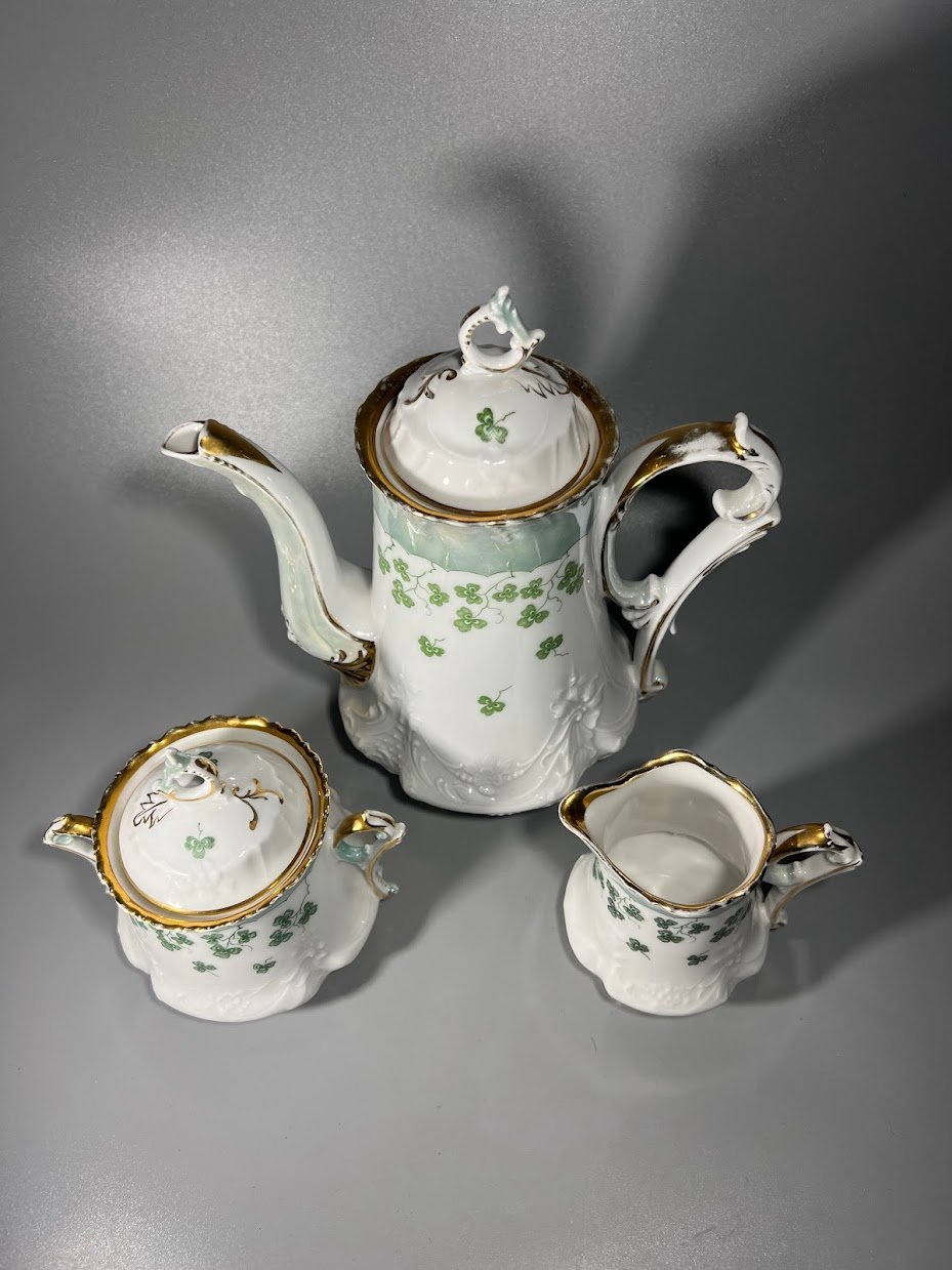 Servizas trio kavos, arbatos antikvarinis, porcelianinis C.T., Carl Tielsch & Co. (C.T. Altwasser). 1875-1900 m. Kaina 87 už viską