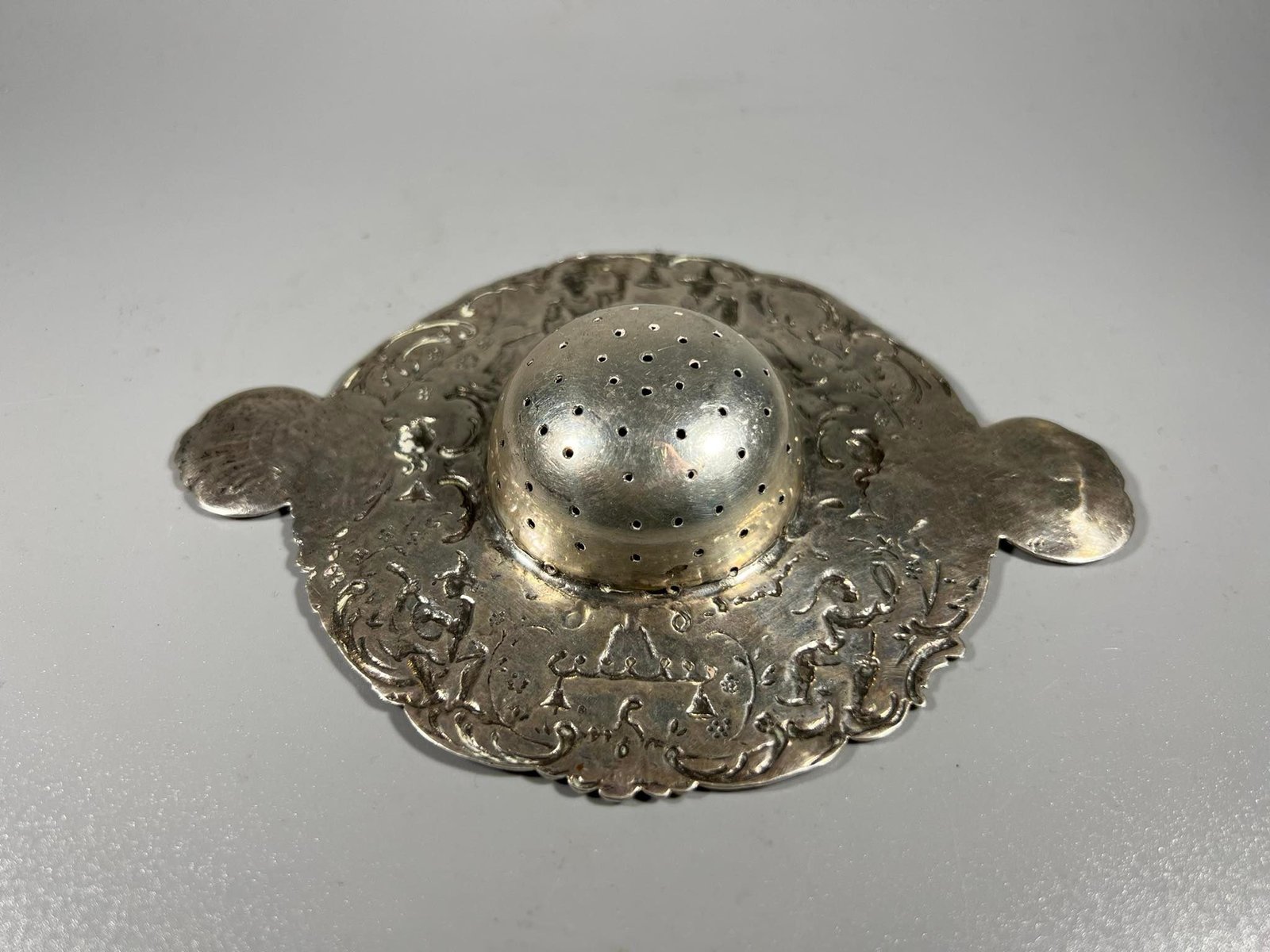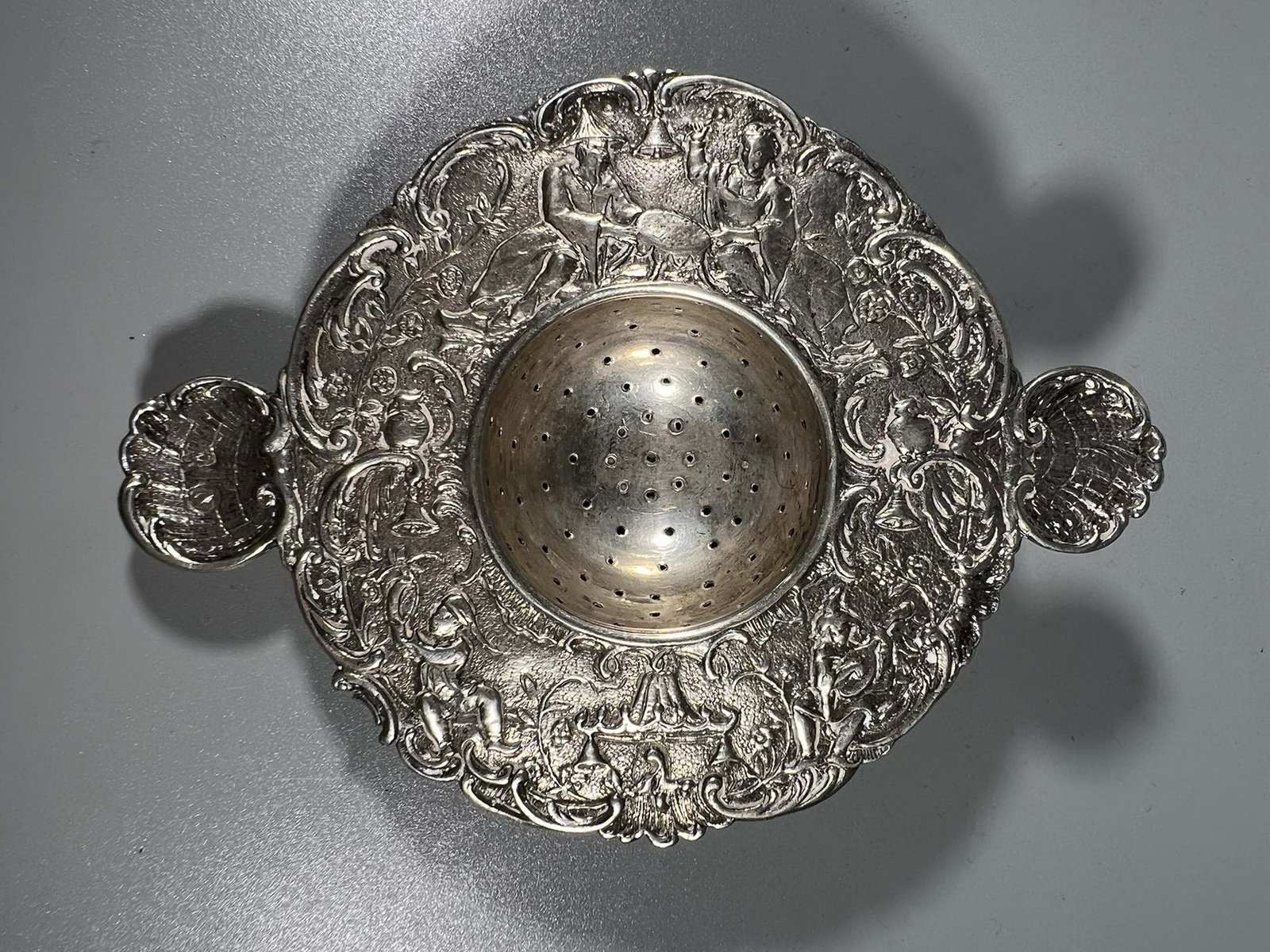 Sietelis arbatai sidabrinis, antikvarinis. Hanau, Vokietija. Svoris 74 g. Kaina 158
