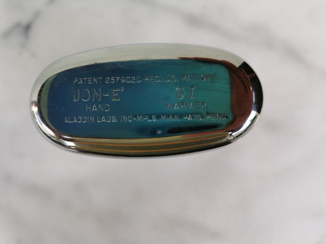 Šildynė rankoms. Pagaminta JAV. Dydis: 3 x 7 x 12 cm. Kaina 38