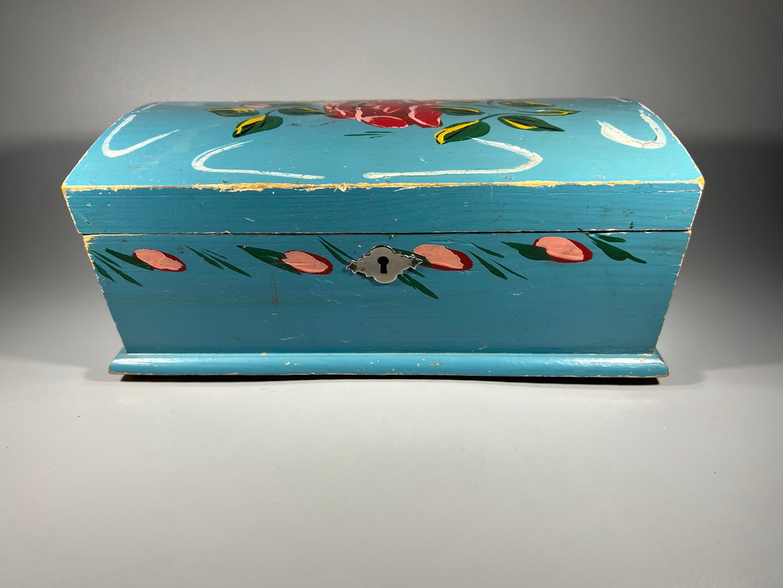 Skrynelė, dėžutė medinė, tapyta. Aukštis 11, plotis 14, ilgis 23 cm. Kaina 22