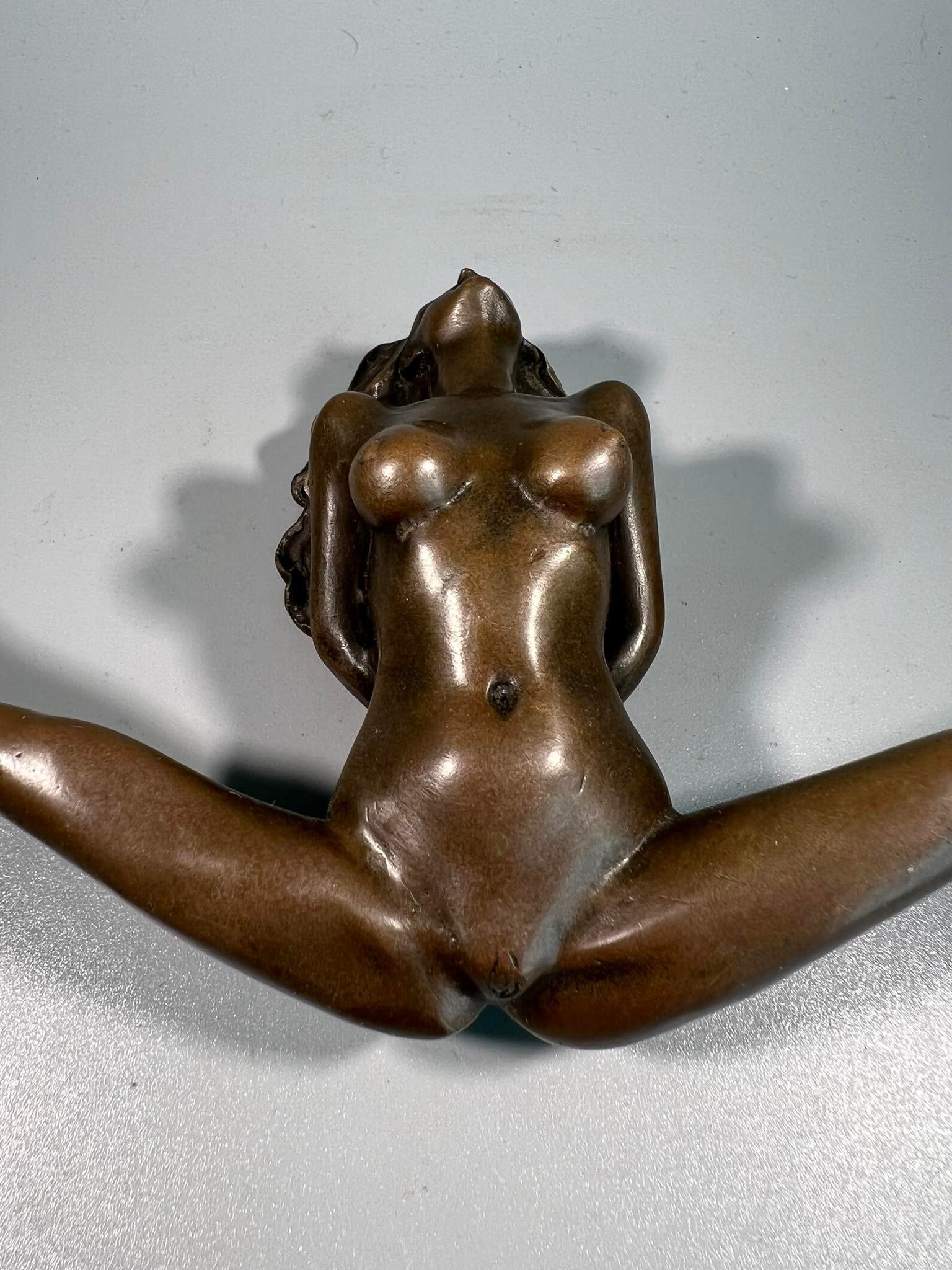 Skulptūra, statulėlė erotinė, bronzinė Mergina gulinti. Autorius Jean Patoue. Prancūzija. Kaina 187